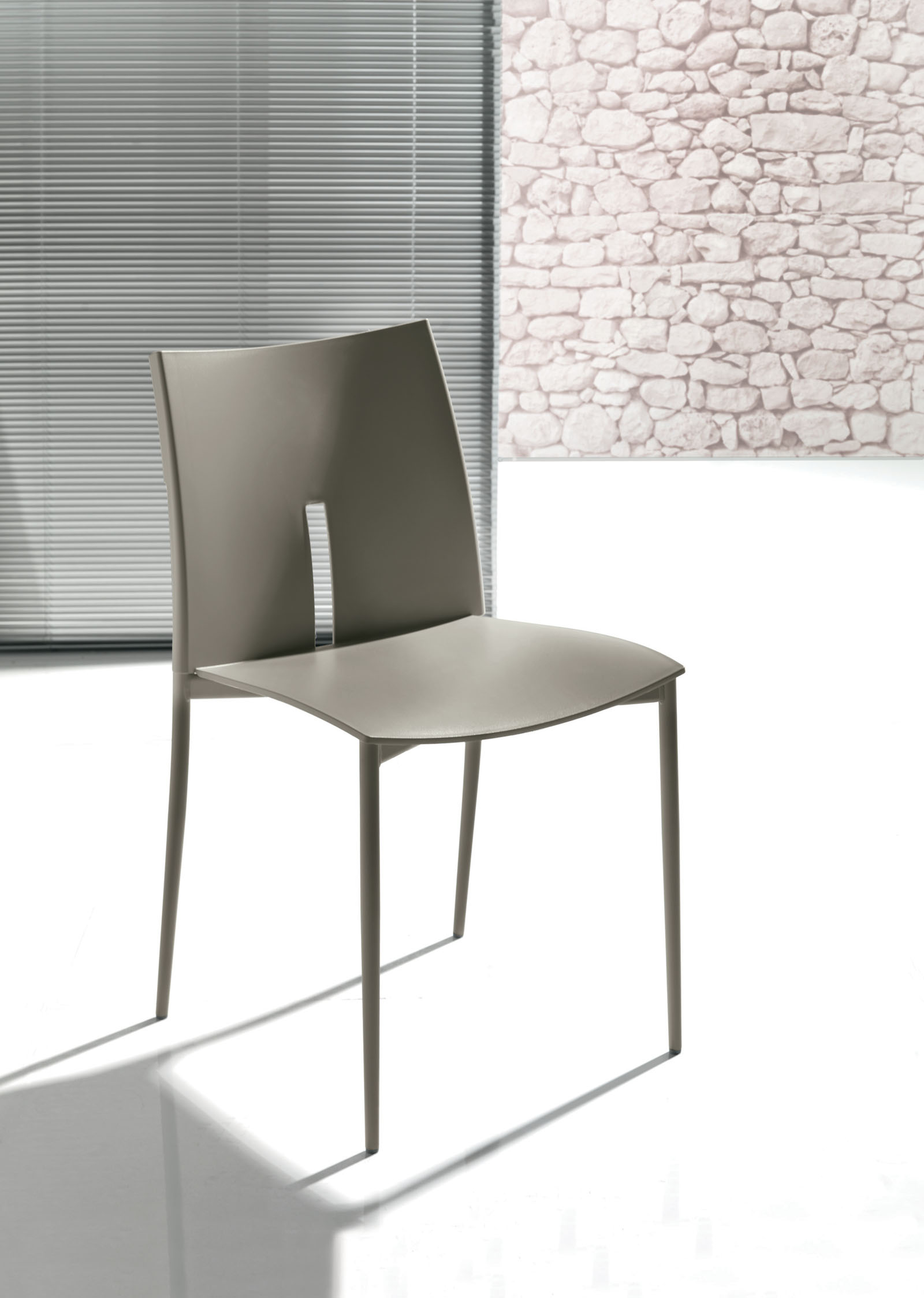 Chaise avec structure en acier laqué, assise et dossier en polypropylène.