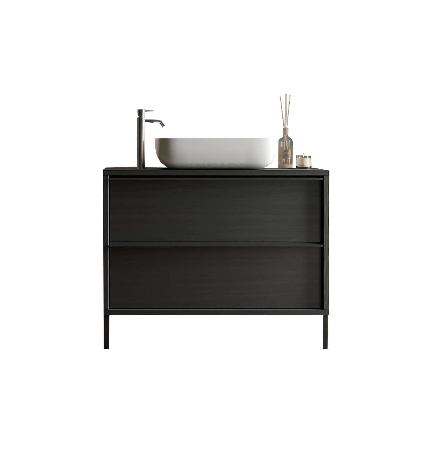 Meuble de salle de bain 2 tiroirs avec lavabo en ACIER