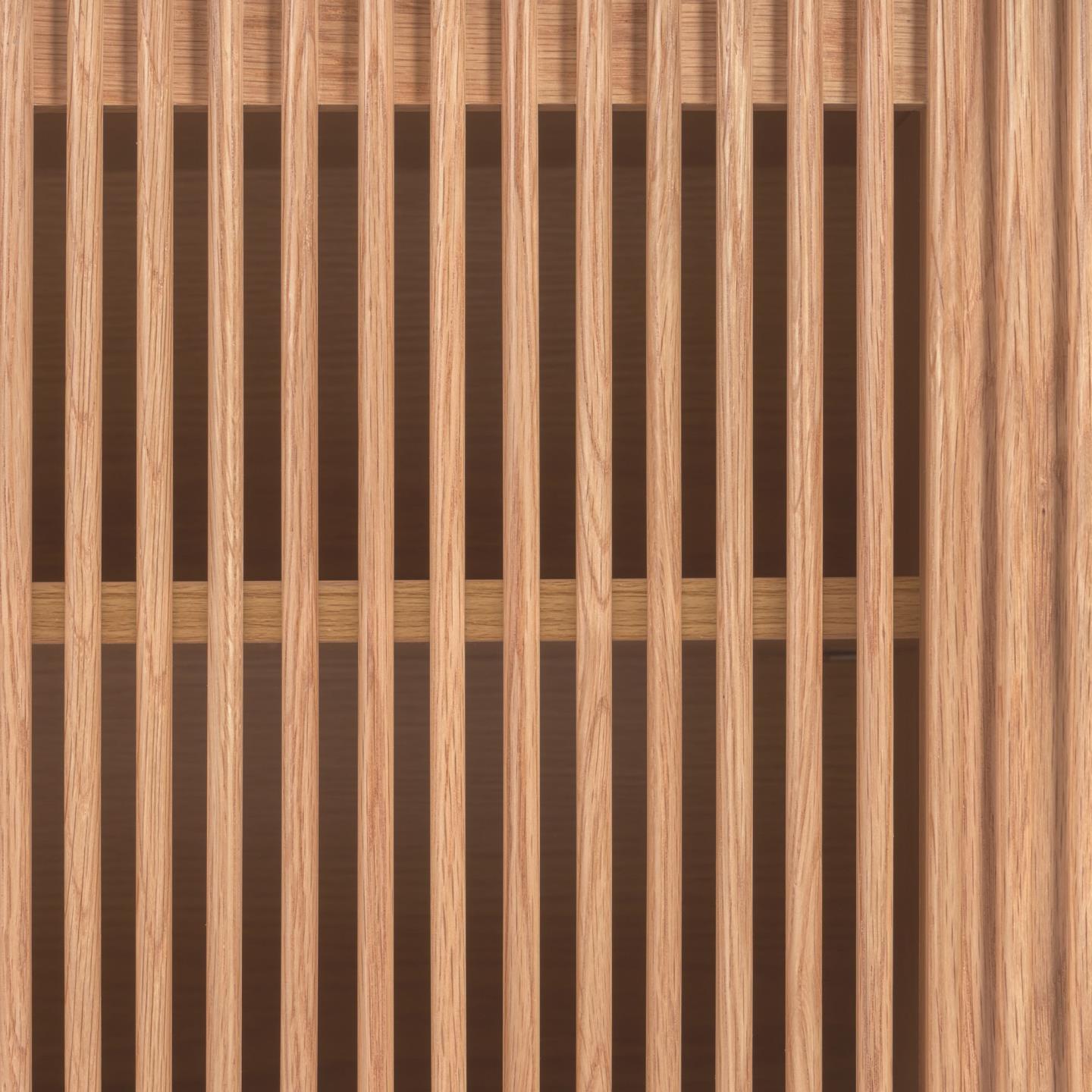 | Matériel | 78 % MDF E0 (panneau de fibres à densité moyenne à faible émission de formaldéhyde classe E0), 20 % placage de chêne (Quercus alba), 2 % bois de frêne (Fraxinus Excelsior) |