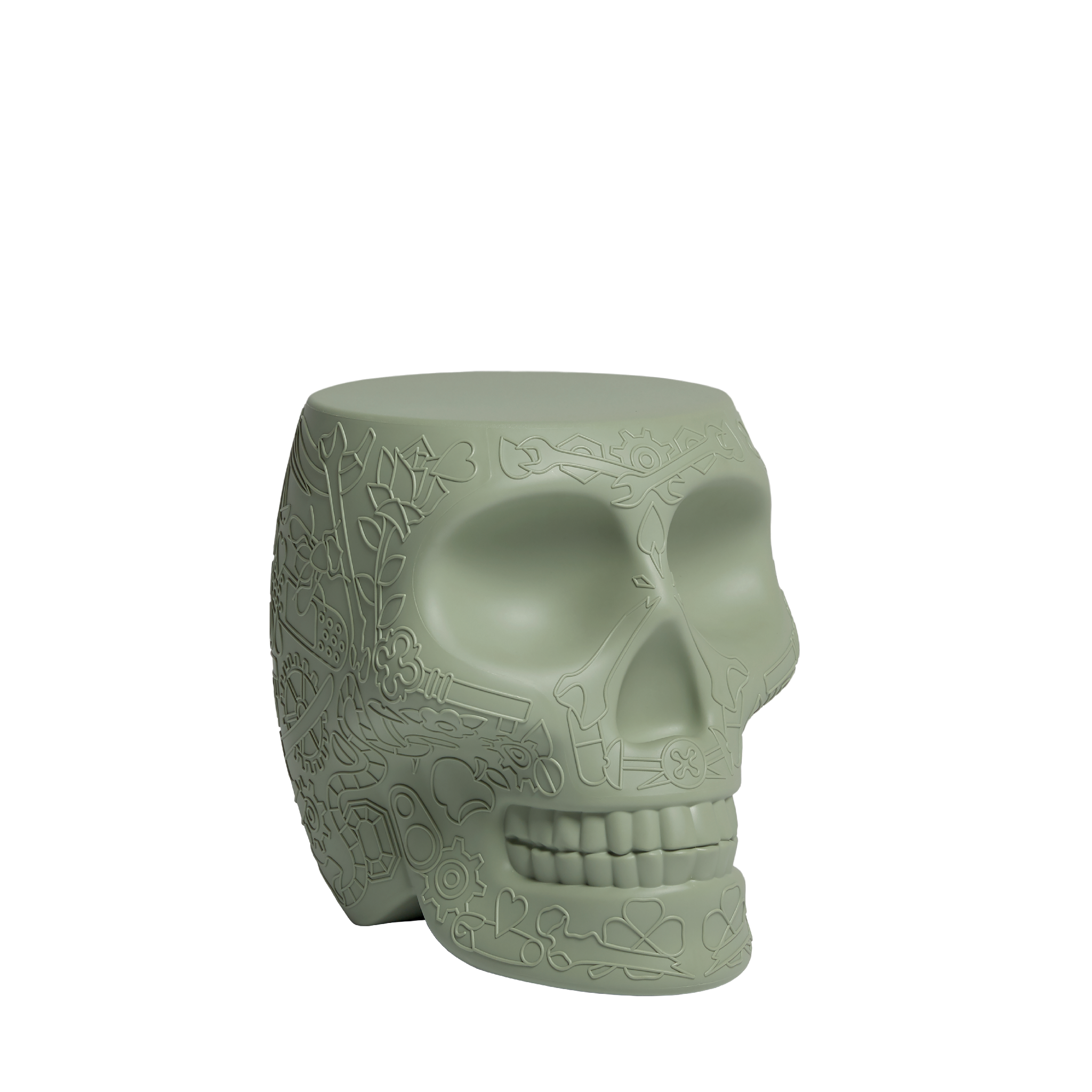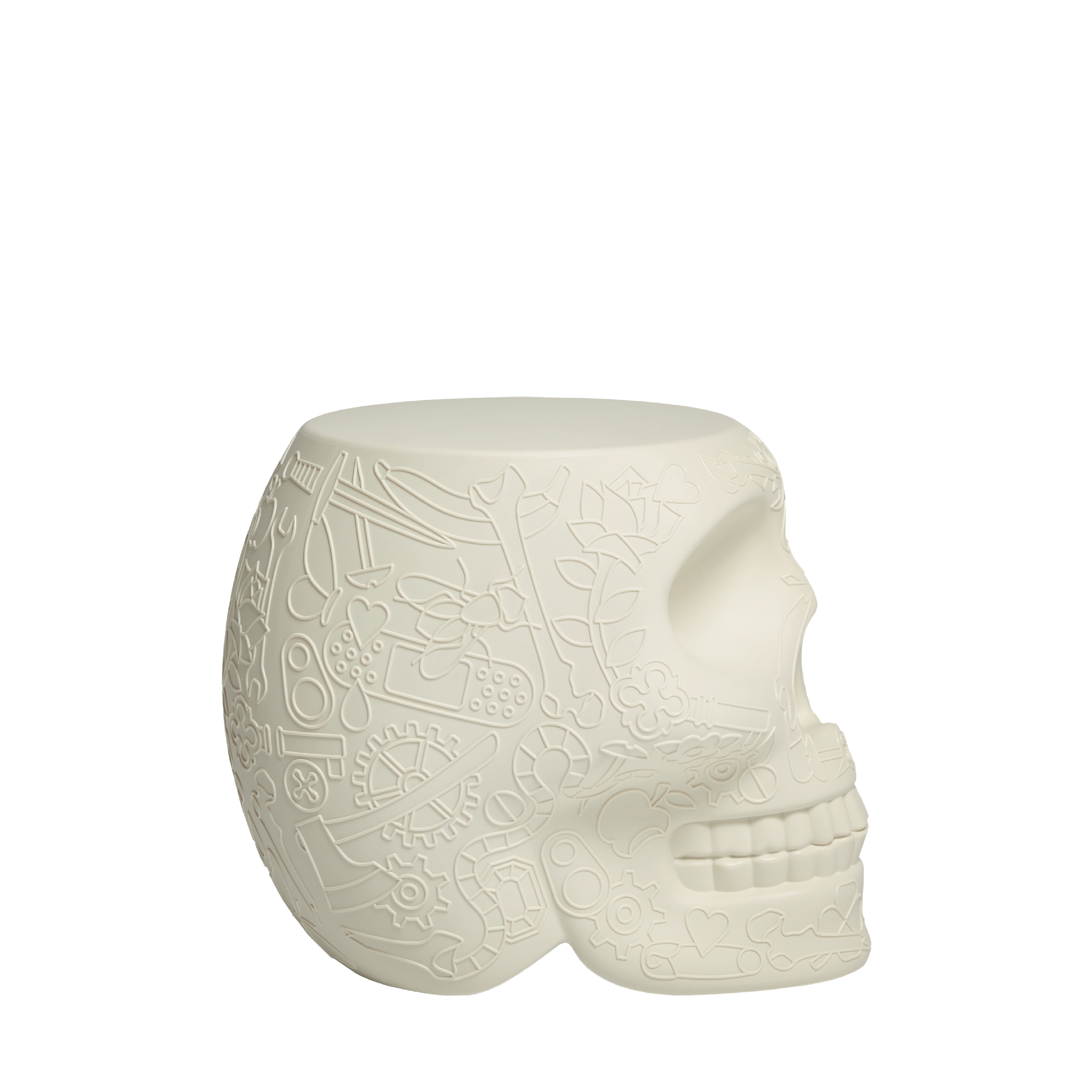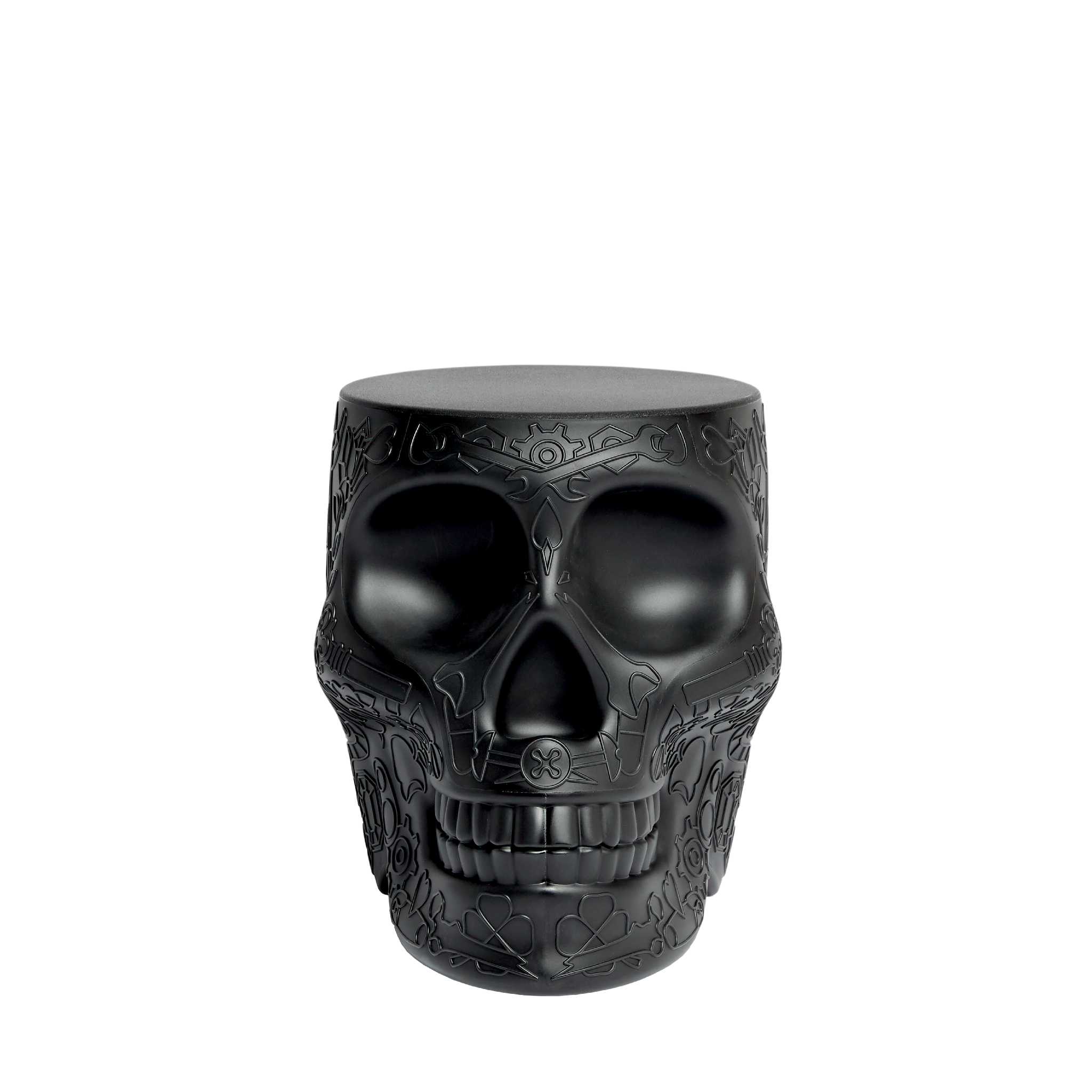 Mexico, conçu par Studio Job, est un objet design en forme de crâne avec un motif graphique sur la surface, qui fonctionne à la fois comme un tabouret et une table d'appoint. Rappelant les crânes peints traditionnels du pays homonyme, le Mexique est un rappel fantaisiste de la nature cyclique de notre présence sur Terre, pour exorciser la mort et célébrer la vie. Parfait pour les salons, les salles à manger et les espaces extérieurs.