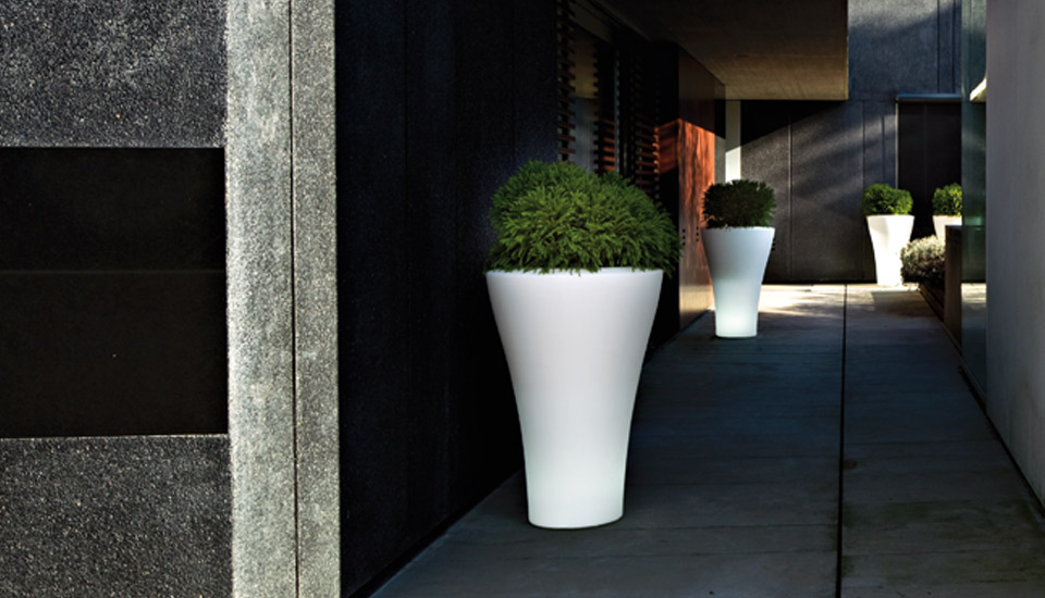 Ming High est un vase de Rodolfo Dordoni pour Serralunga, en polyéthylène. Protection UV, 100% recyclable, résistant aux chocs.