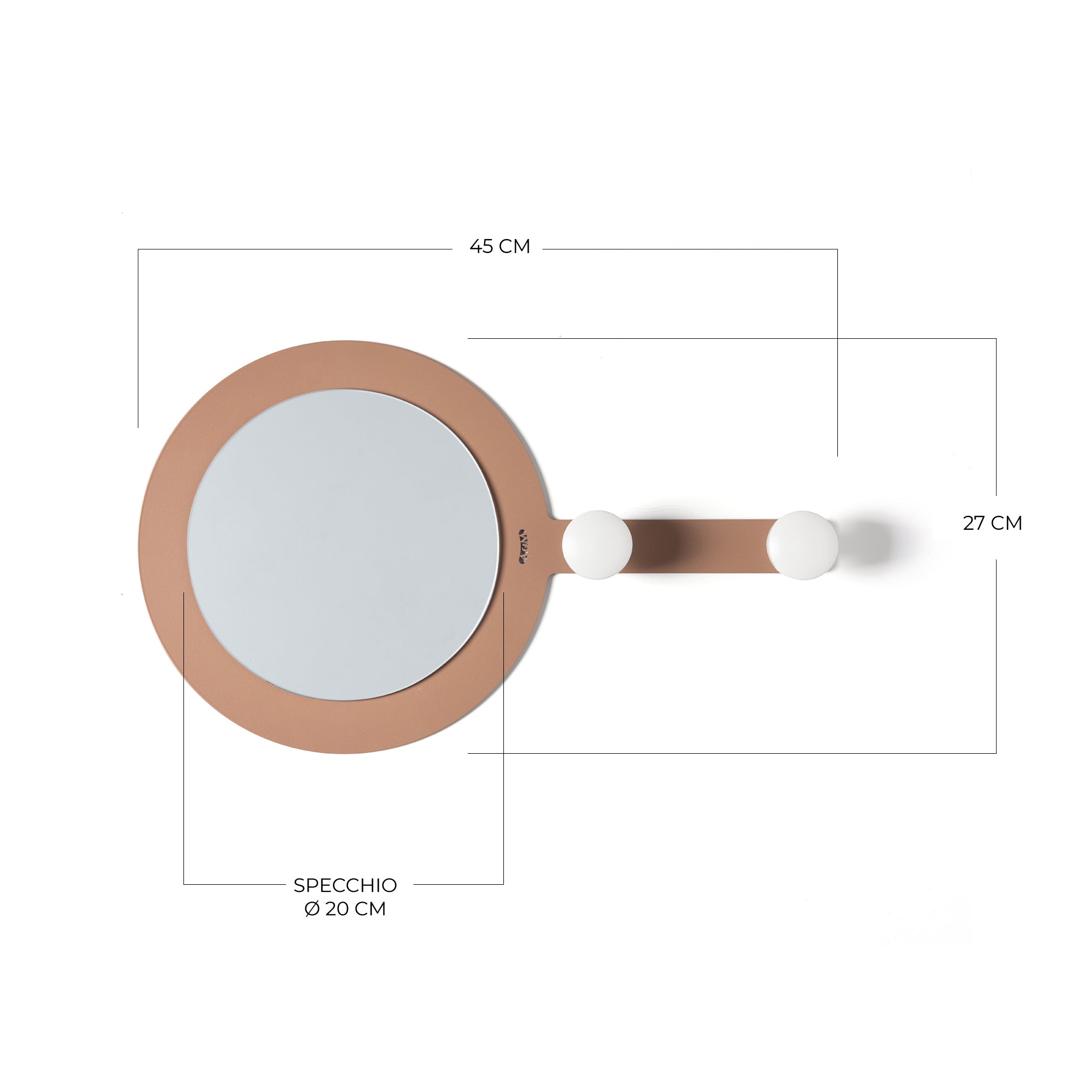 Sa singularité réside dans sa double fonction : d'une part, c'est un miroir circulaire, idéal pour un rapide contrôle de son apparence avant de quitter la maison ; d'autre part, il est doté d'un bras sortant du cadre, muni de deux poignées, permettant d'accrocher manteaux, sacs, foulards ou accessoires. Cette combinaison en fait un allié précieux, notamment dans les petits espaces, où chaque élément doit être conçu pour de multiples usages. Ses dimensions compactes de 45 x 27 cm lui permettent de s'adapter à tout type de mur, même dans les espaces étroits, tout en conservant une esthétique discrète et distinctive. Il est disponible dans une palette de cinq couleurs raffinées et polyvalentes : noir, boue, blanc marbré, mousse moka et pétrole. Chaque teinte est conçue pour s'harmoniser avec différents types de décoration, des plus sobres et naturels aux plus modernes et audacieux.