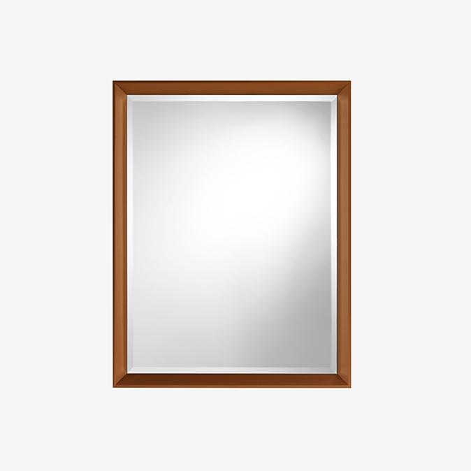 Le miroir Riflesso est doté d'un cadre en aluminium, disponible en finition chrome satiné ou peint sablé, et d'un verre miroir trempé et biseauté.