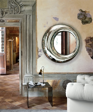 Rosy s'adapte parfaitement à n'importe quel cadre de vie, à la fois moderne et historique. En verre fondu de 8 mm argenté, miroir plat de 5 mm. Panneau de fixation arrière avec possibilité de suspension dans différentes positions.