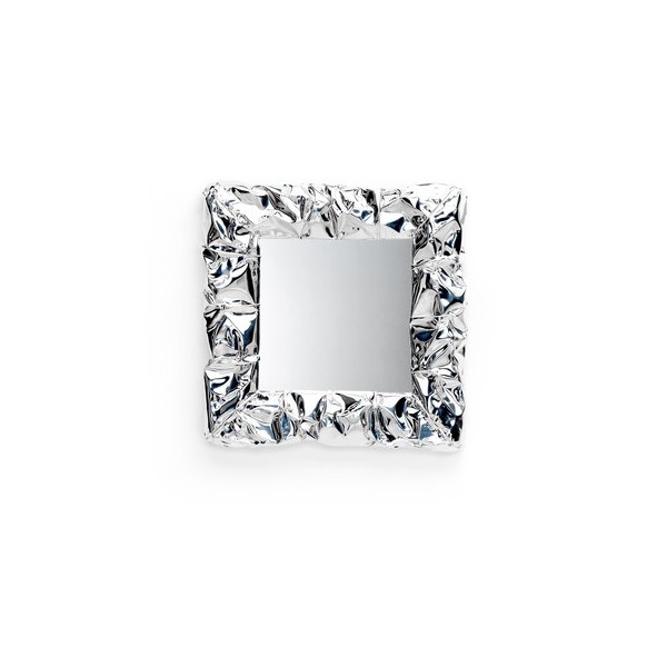 Miroir avec cadre en aluminium chromé froissé à la main. Artisanat, chaque pièce est unique.