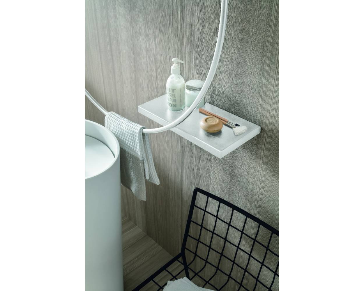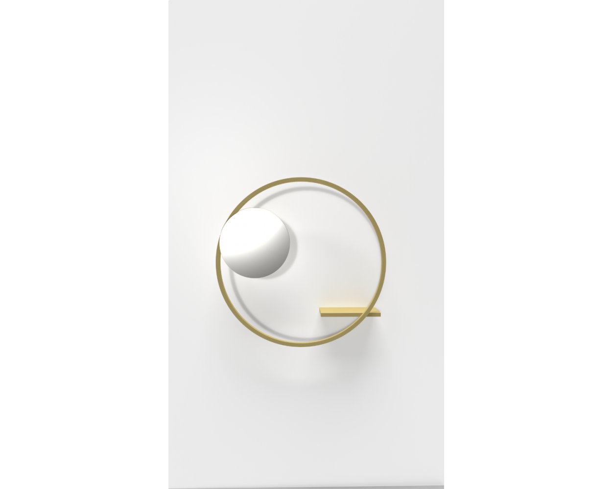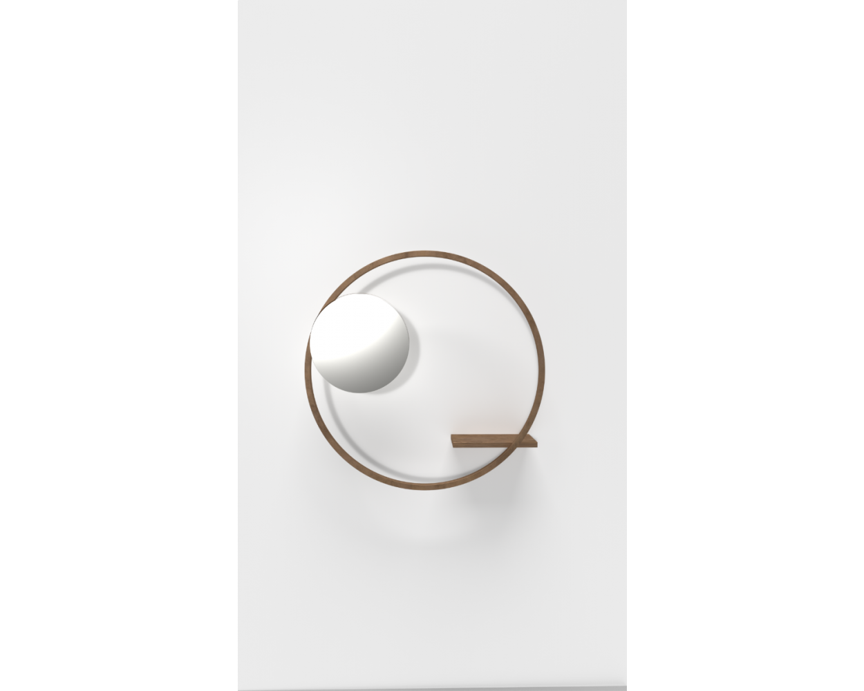 Dimensions : Anneau : ø 110 cm. Étagère : 39,5 x 19,5 cm. L : 21,5 cm Dimensions miroir : ø 50 cm