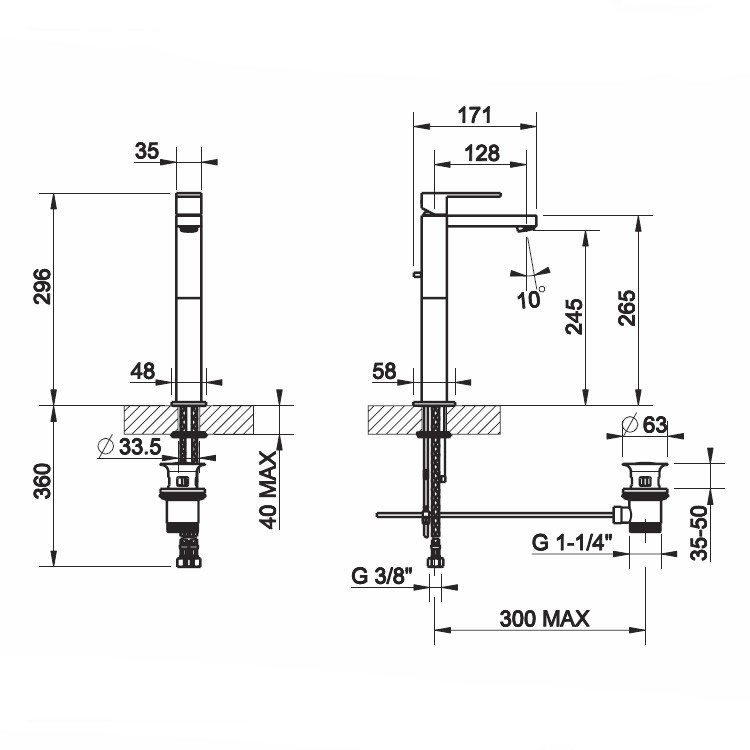Mitigeur monocommande de lavabo sans vidage.