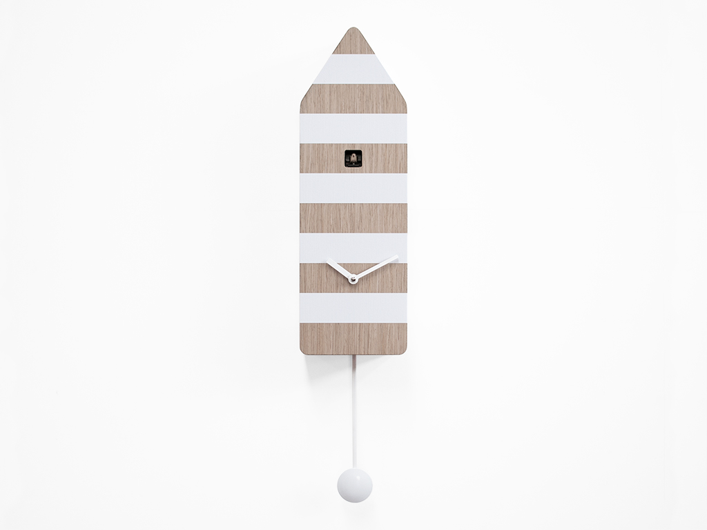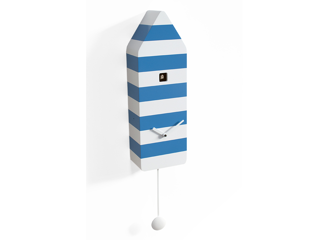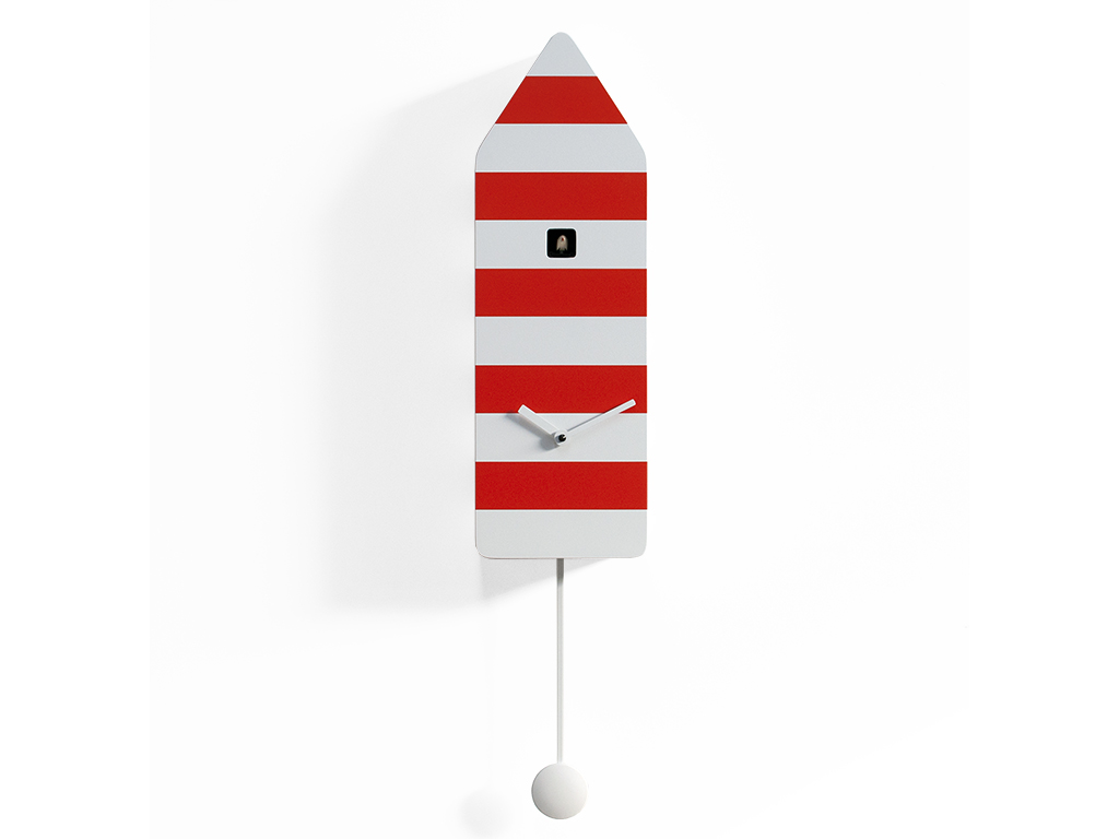Capri est le coucou inspiré par l'une des destinations touristiques les plus recherchées d'Italie, l'île du golfe de Naples, un lieu de vacances et de détente. Le coucou aux teintes vives et aux lignes épurées rappelle les cabines des installations de baignade mais avec les couleurs typiques des feux de signalisation des îles. Un objet simple qui contient de nombreuses émotions et souvenirs. Capri fait partie de l'exposition permanente du Deutsches Uhrenmuseum, le musée historique de l'horloge allemand, important pour la vaste collection de montres et de coucous du monde entier. Capri est en bois, équipé d'un mouvement à quartz à pile avec un capteur qui exclut automatiquement la sonnerie en l'absence de lumière.