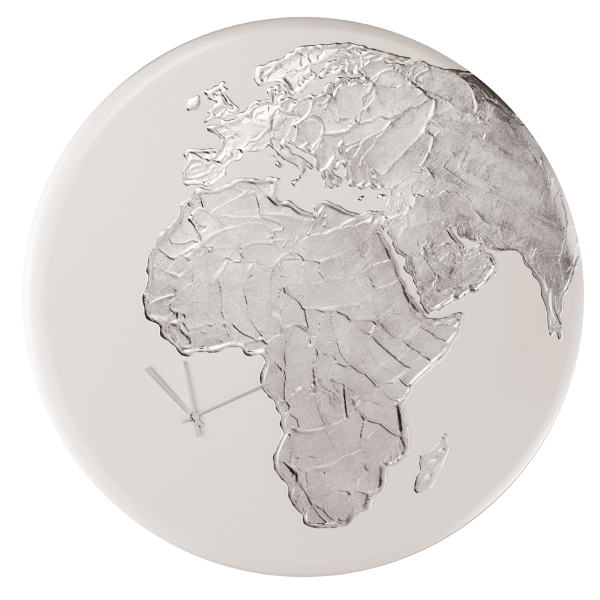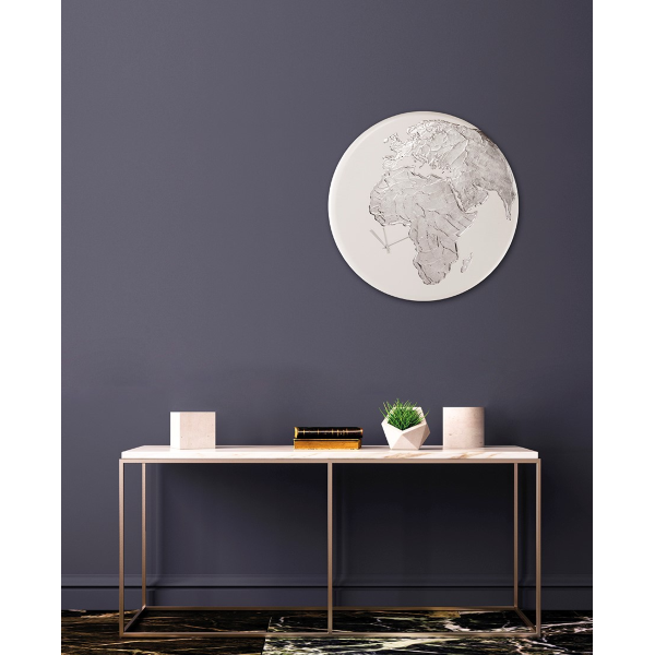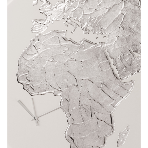 Horloge laquée ivoire, décorée à la main de feuille d'argent sur fond texturé.