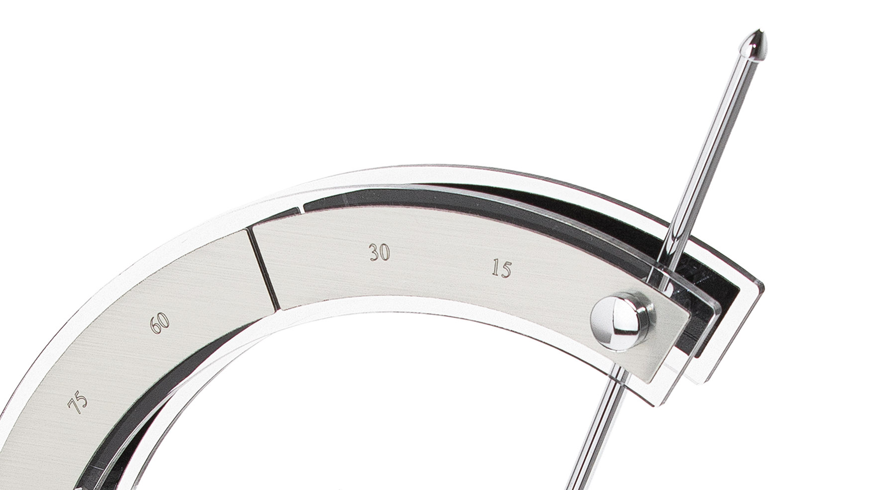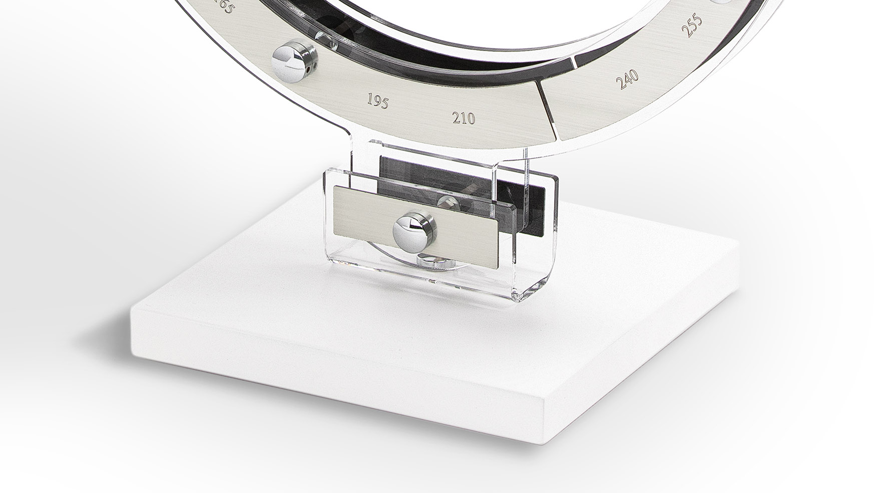 Support - méthacrylate transparent haute densité et pureté, laiton chromé et MDF laqué avec possibilité d'inclinaison et de rotation manuelles