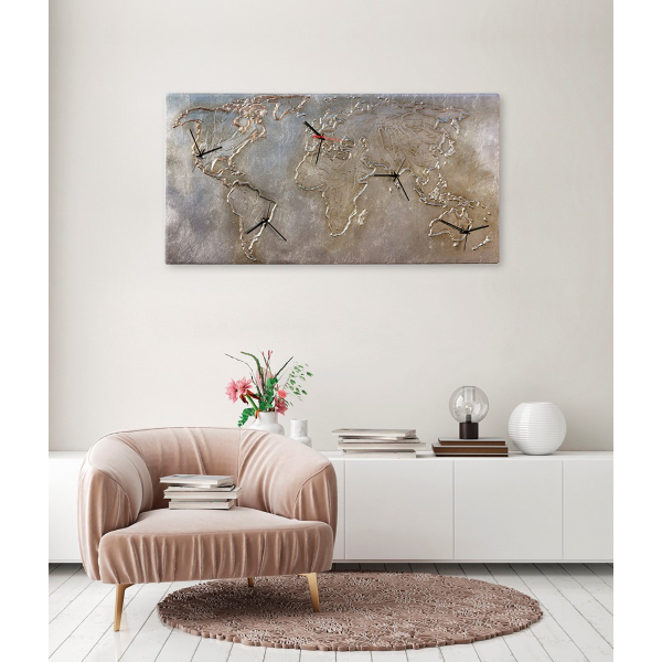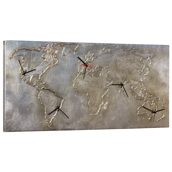 Structure en toile décorée à la main avec cinq cadrans, traitement des matériaux en relief et feuille d'argent.
