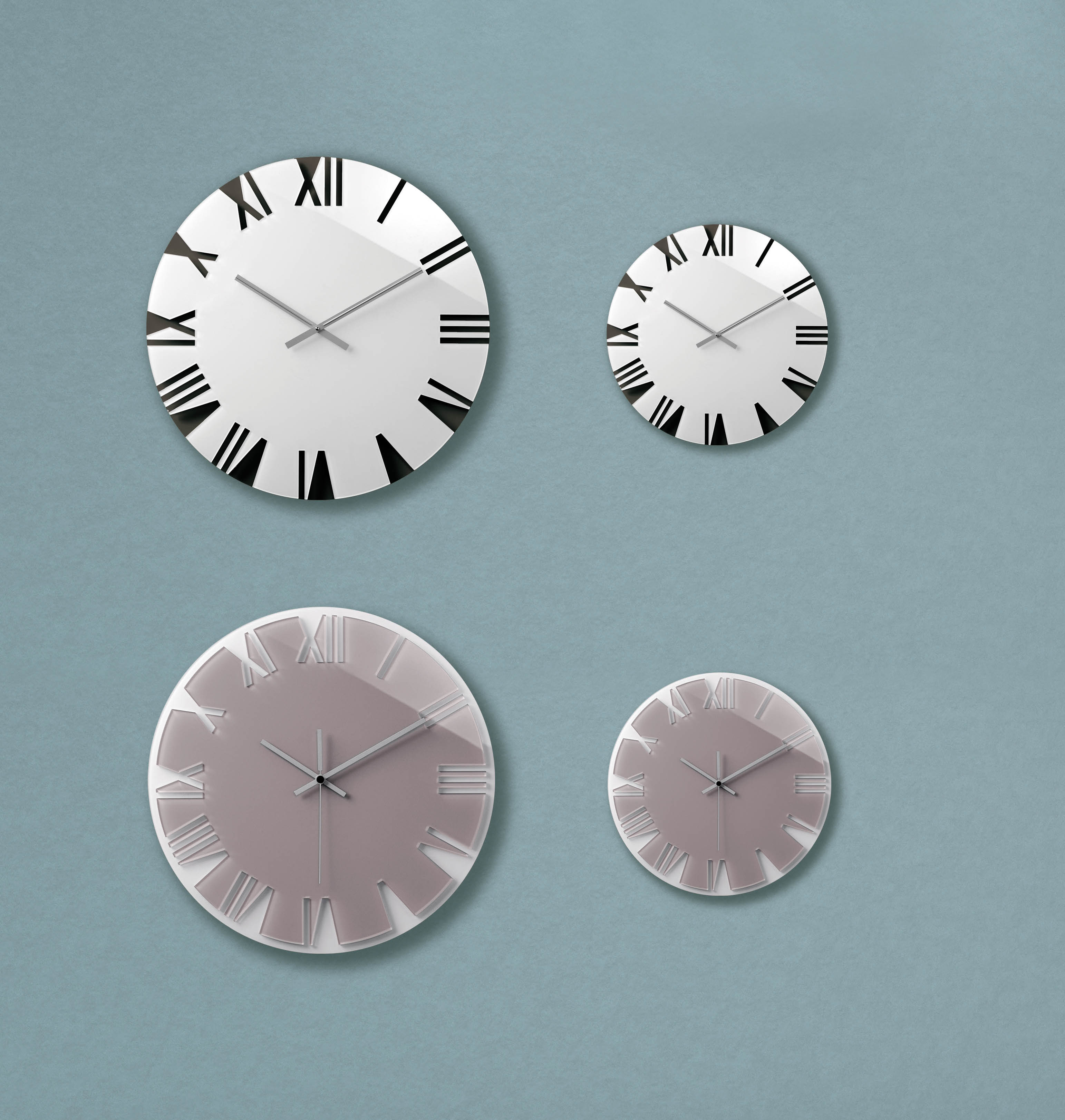 Horloge murale ronde en cristal acrylique bicolore et mouvement à quartz.