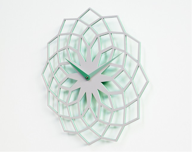 Horloge murale en métal peint. Mouvement à quartz à pile.