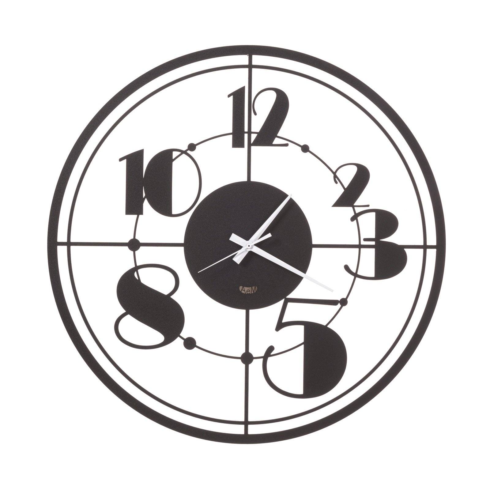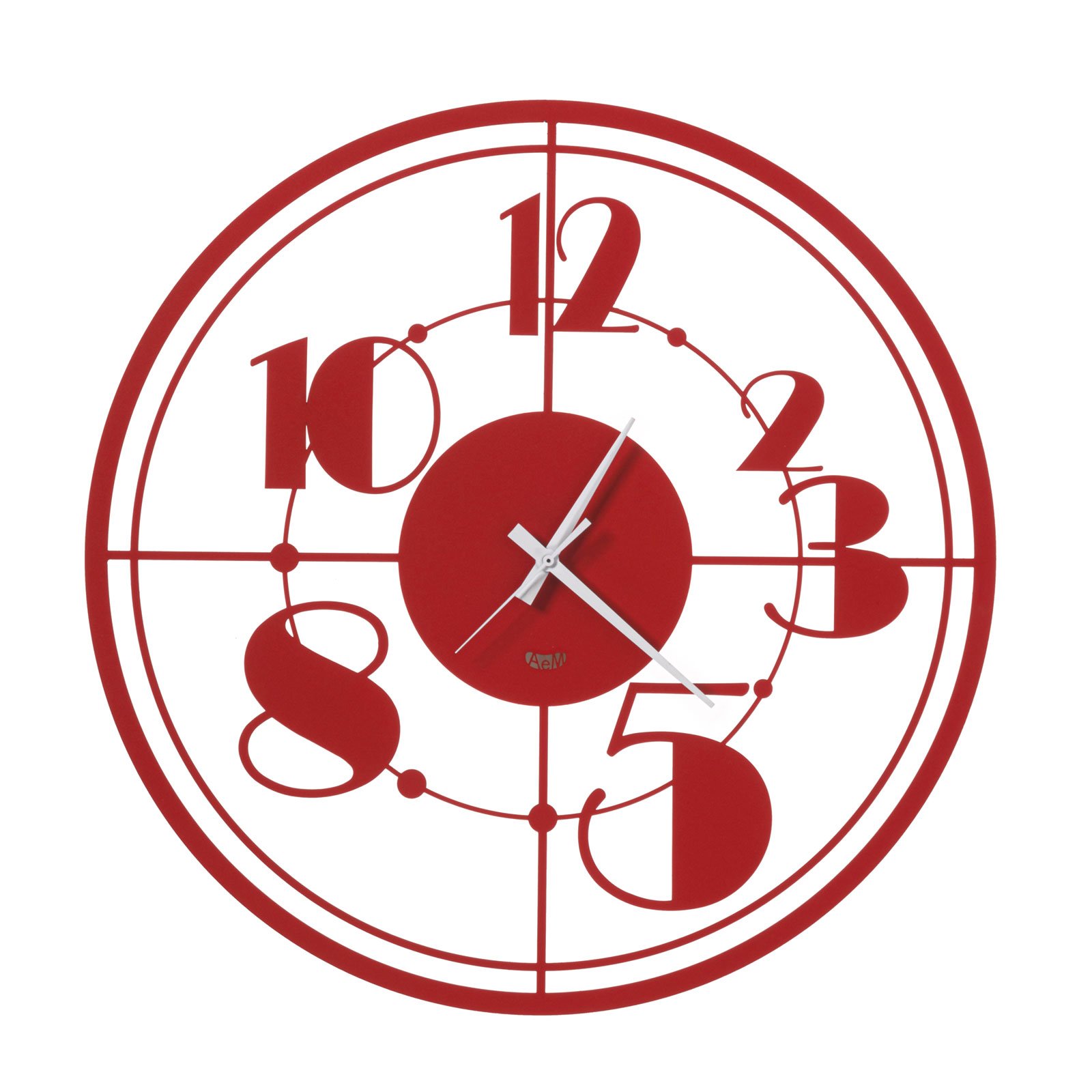 Horloge murale avec chiffres écrits dans une police rétro. Conception minimale. Disponible en trois couleurs.