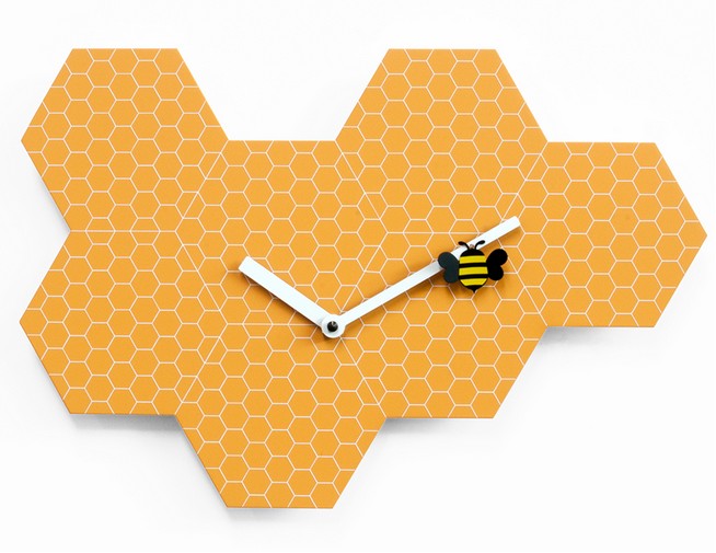Horloge de fête amusante et colorée, idéale pour les chambres des plus jeunes ou pour ajouter une touche de gaieté et de légèreté aux chambres. Fabriqué en acier Time2bee, il prend la forme et le graphisme des ruches où une abeille jaune et noire, suspendue à l'aiguille des minutes, se déplace tranquillement entre les cellules. Mouvement à quartz à pile.