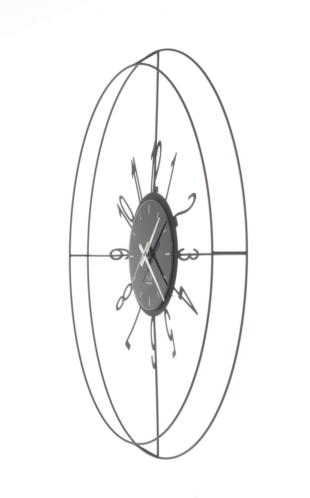 Horloge murale composée d'un cadran entouré de chiffres et de lignes fines pour tout lier. Disponible en deux couleurs, extrêmement polyvalent.
