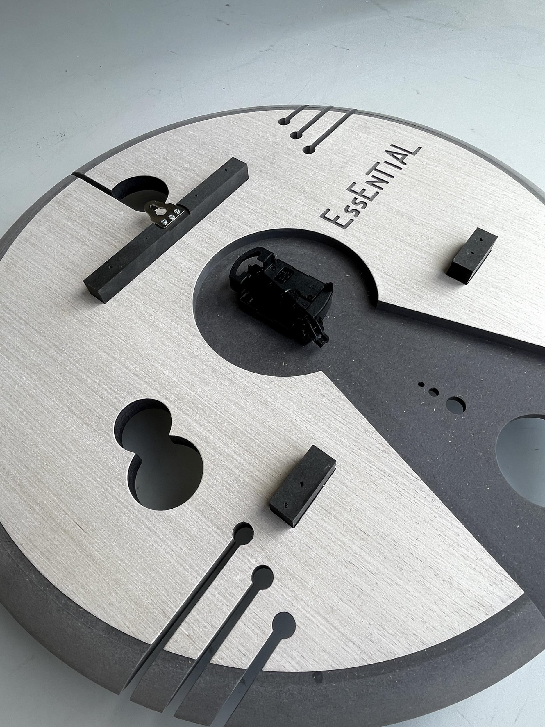 La surface externe est incrustée de diverses essences précieuses, telles que l'érable, le noyer national, le châtaignier, le noyer Canaletto. La finition de surface est mate naturelle. La structure interne est en pulpe de bois.