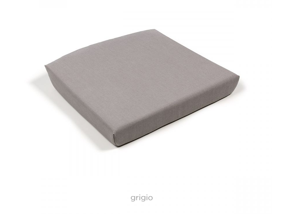 Fauteuil monobloc. Matière : polypropylène fibre de verre traité anti-UV, teinté dans la masse. Finition mate. Equipé de pieds antidérapants. Coussin disponible sur commande. Résine recyclable.