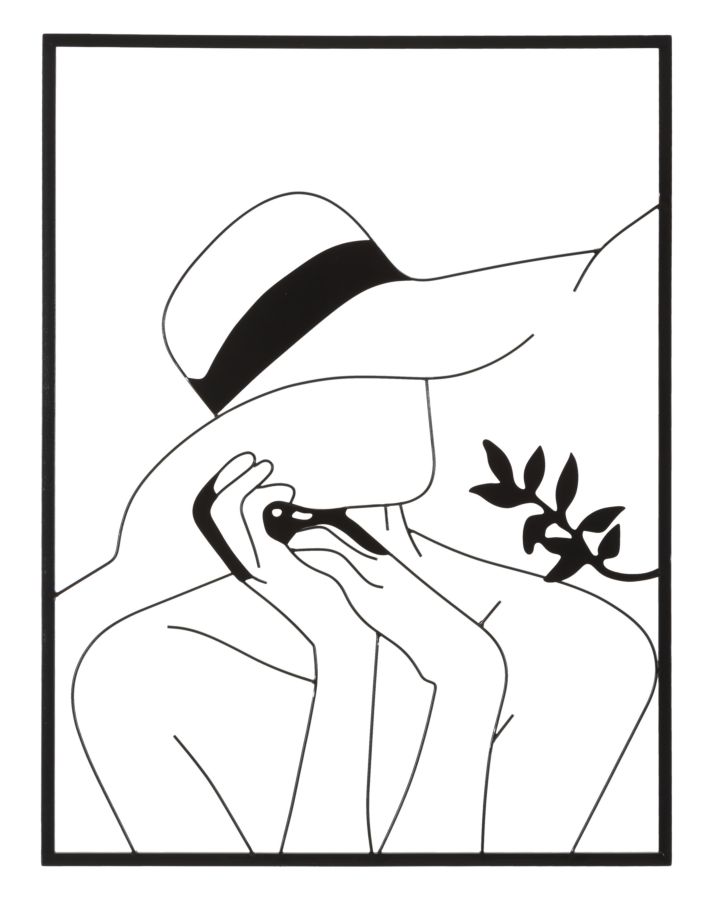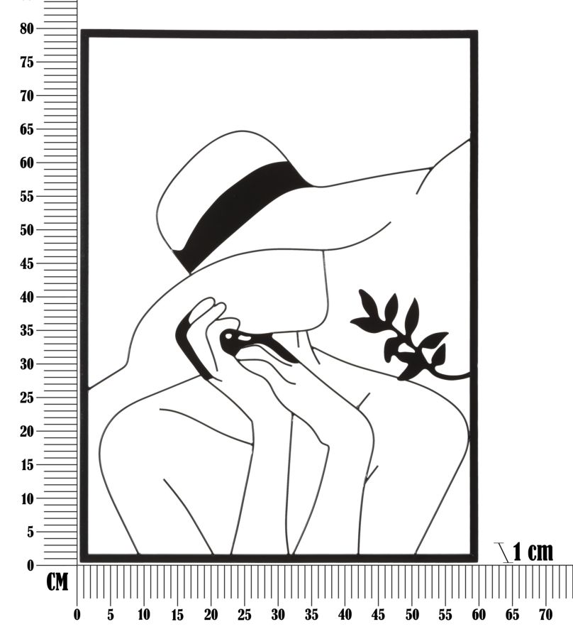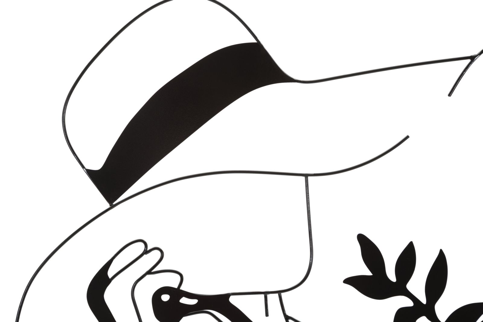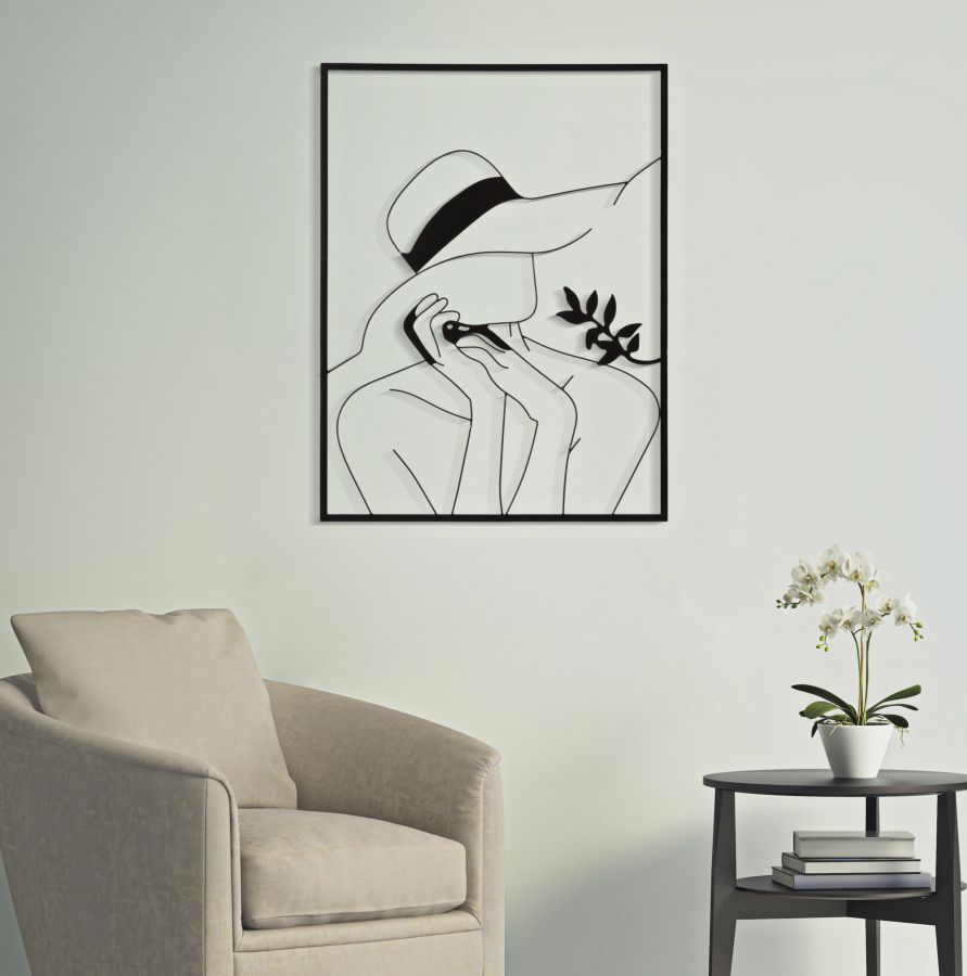 Panneau mural décoratif 3D aux caractéristiques simples et essentielles qui composent une figure féminine avec un élégant chapeau, le tout enfermé dans un cadre rectangulaire.