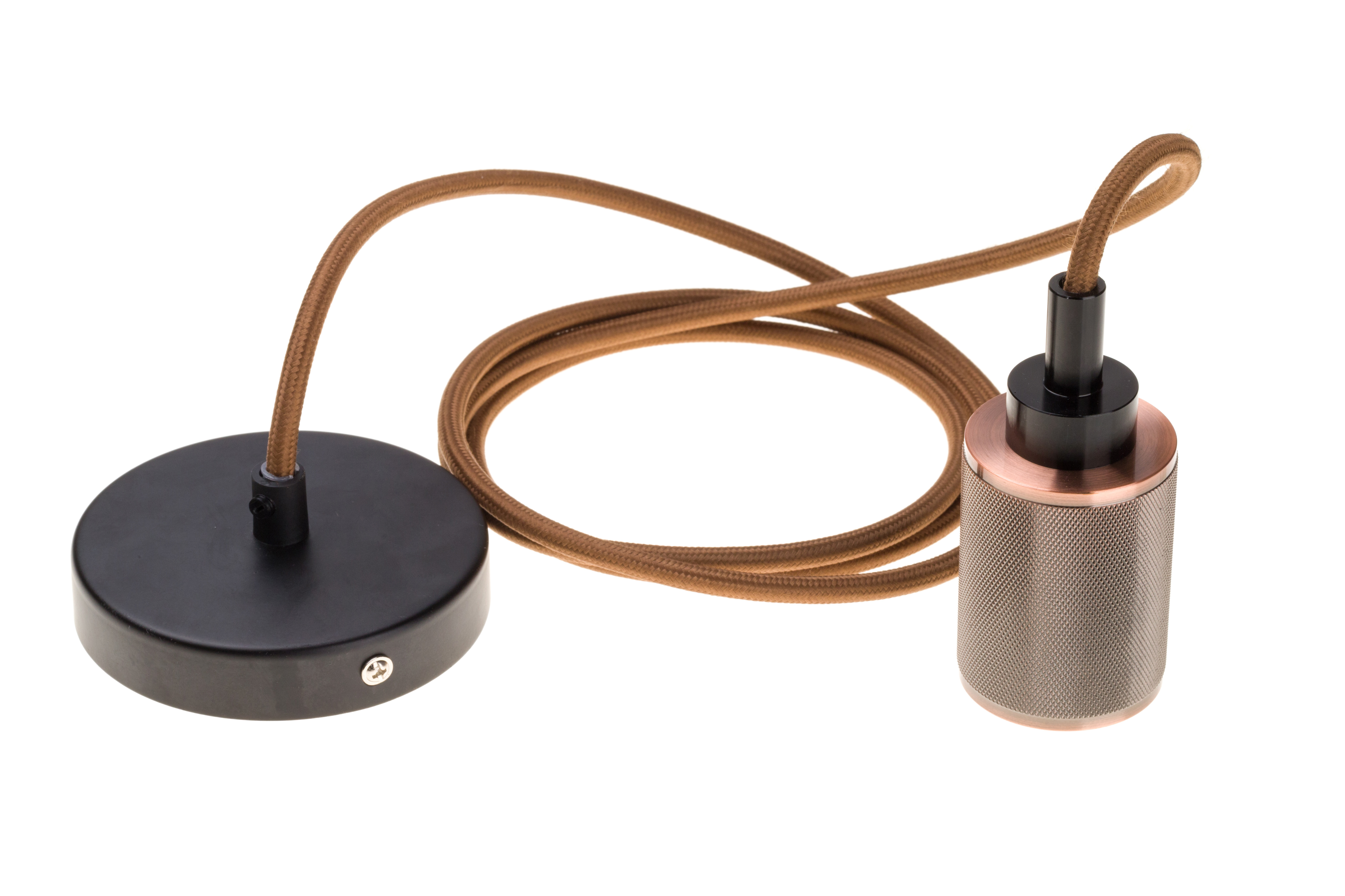 Cuivre Matériau métallique, câble textile avec terre entre la rose et le support de lampe.
