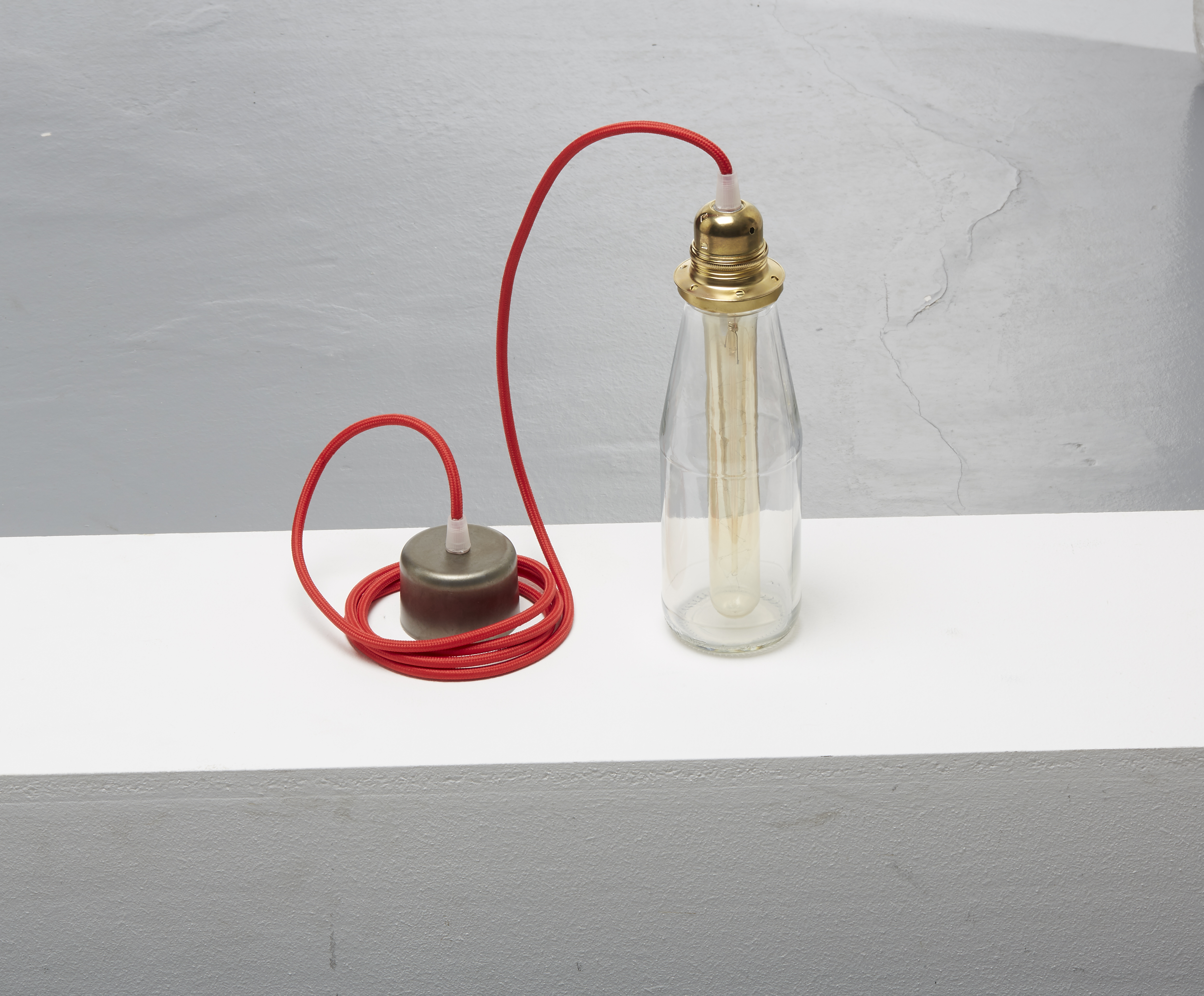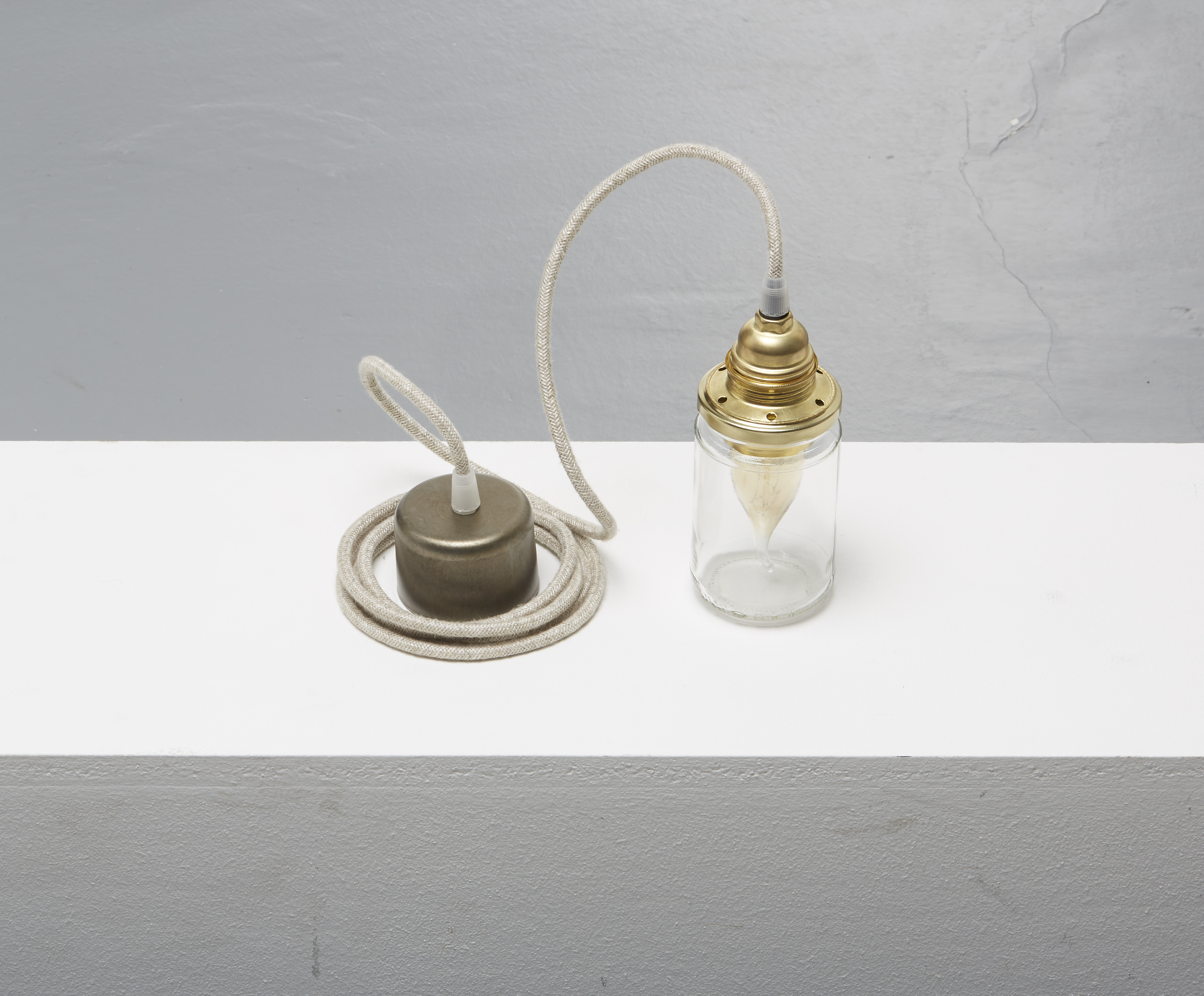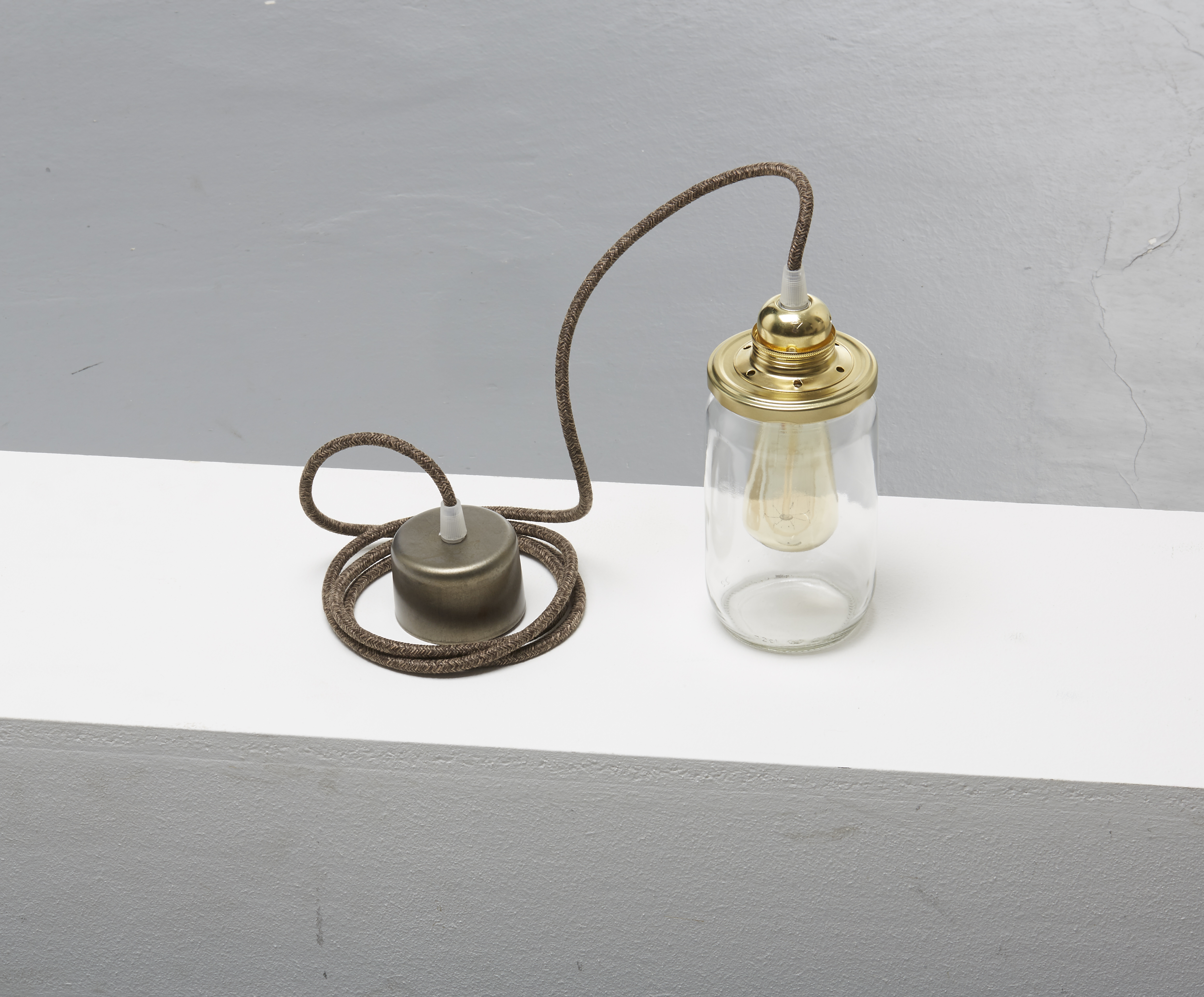 Complet avec serre-câbles, câble textile avec connexion à la terre entre la rose et le support de lampe.