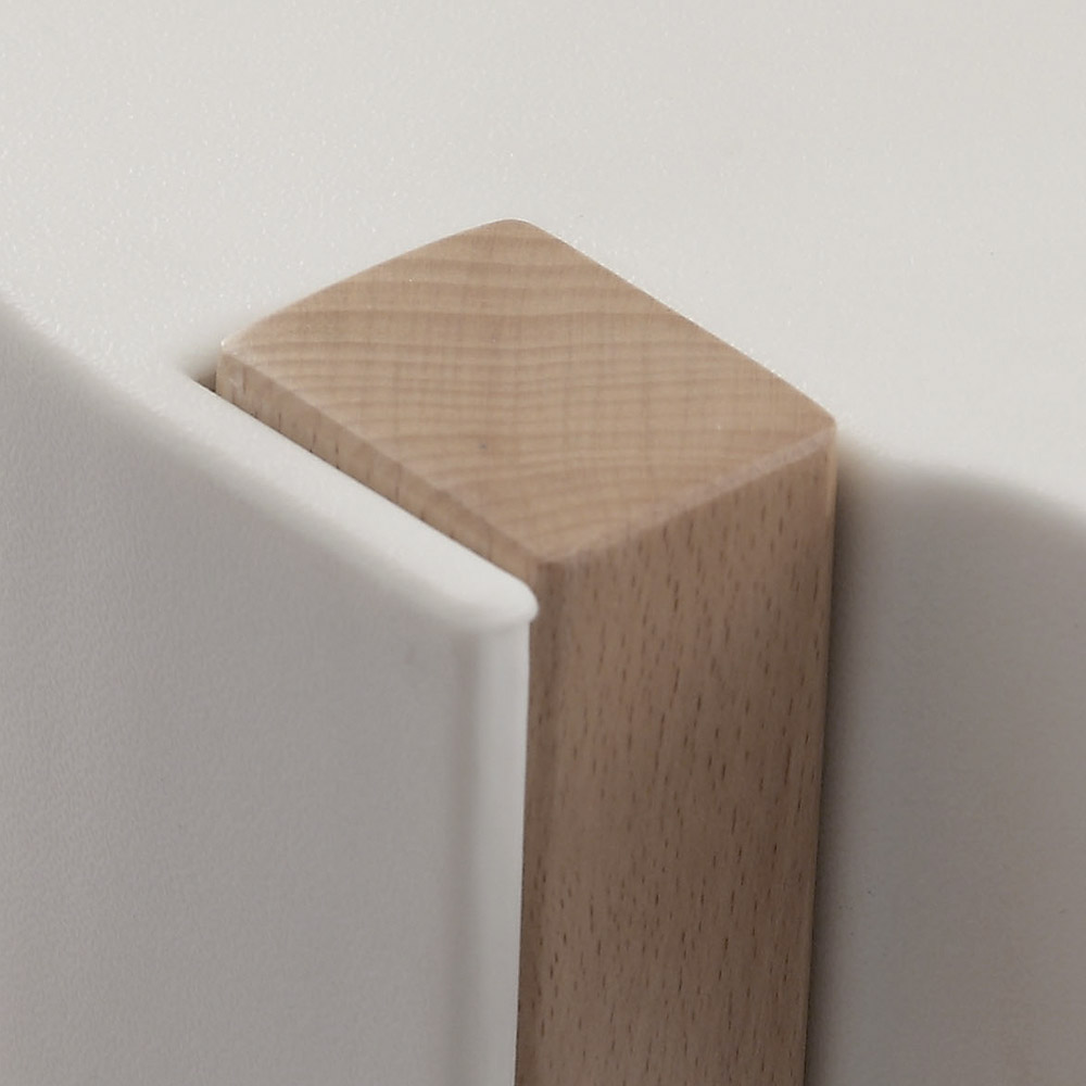 Les pieds en hêtre naturel massif confèrent à la table basse Yang une robustesse et une beauté intemporelles, tandis que le plateau en polypropylène blanc ajoute une touche de modernité et de luminosité.