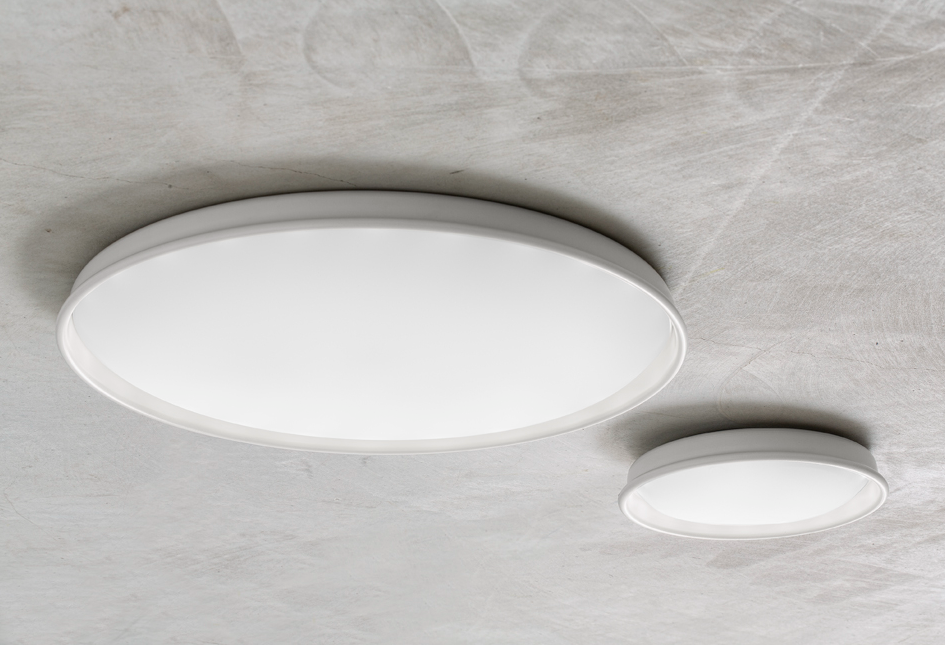 MYMOONS est une série composée de trois appareils de tailles différentes, disponibles à la fois en version suspension avec support rigide et en version plafond.