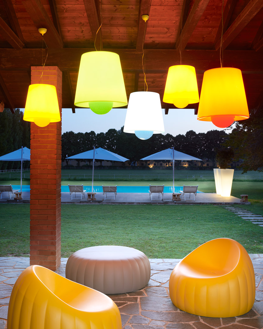 Lampe à suspension colorée au style unique caractérisée par une texture de style arabe qui est également rappelée dans le dôme inférieur, enrichissant le polyéthylène avec lequel elle est fabriquée. Amusez-vous à créer une explosion de couleurs dans vos espaces intérieurs.