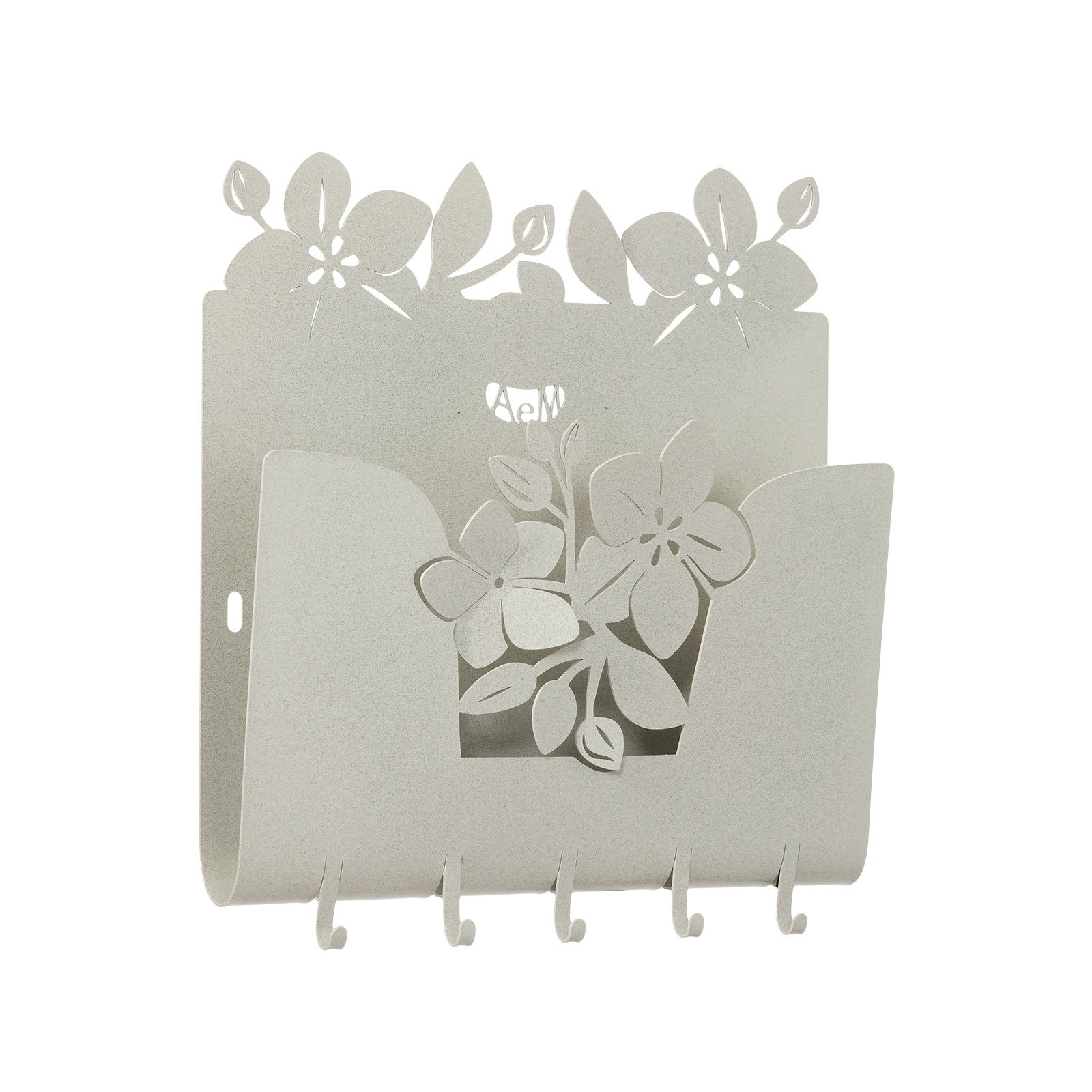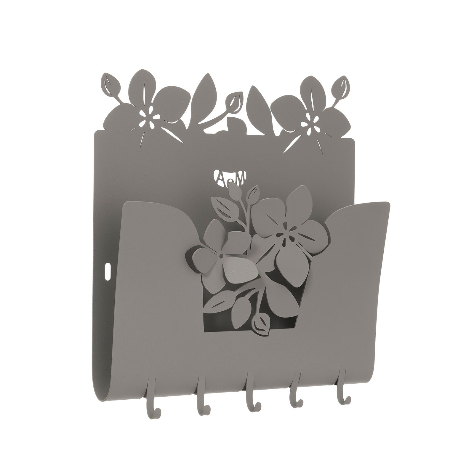 Un porte-clés et un porte-courrier avec cinq petits crochets et un espace de 5 cm d'épaisseur. Décoré avec des éléments floraux typiques de la ligne Fior di Loto d'Arti e Mestieri.