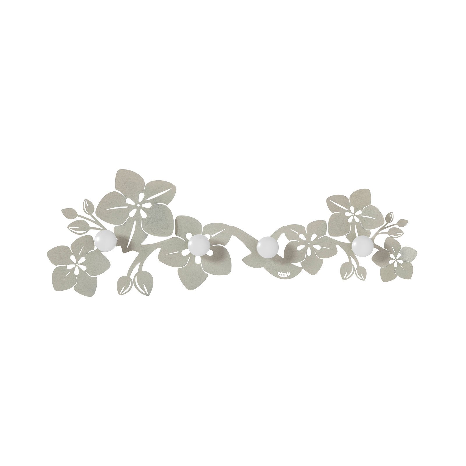 Un cintre mural de l'élégante ligne Fior di Loto, avec quatre crochets blancs et équidistants. Disponible en trois variantes de couleur.