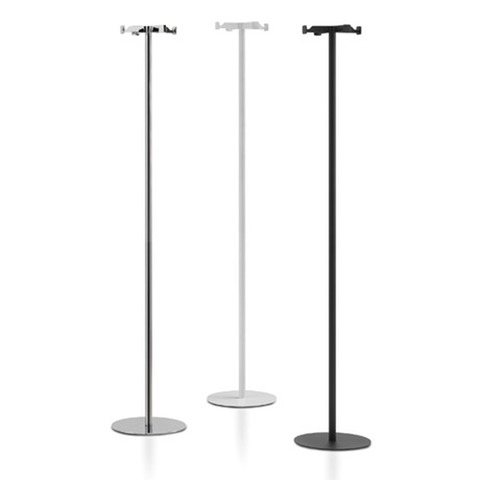 Portemanteau composé d'une base en acier de 5 mm d'épaisseur peinte avec des poudres époxy et d'un support tubulaire en acier ø 28 mm peint avec des poudres époxy, équipé en bas d'une plaque perforée et filetée M8 pour loger la vis acier galvanisé pour fixation au sol.