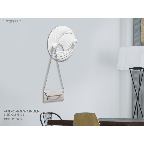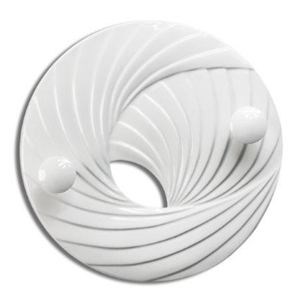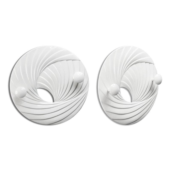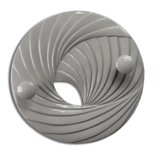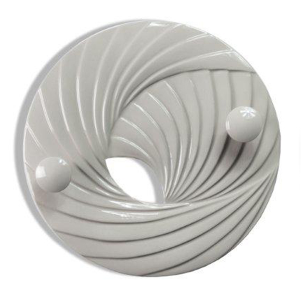 Portemanteau en bas-relief sur résine avec finition brillante et deux boutons laqués de la même couleur.