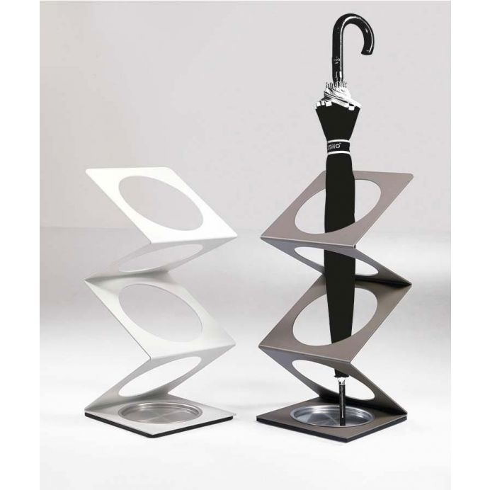 Porte-parapluie en acier peint avec bac collecteur en acier inoxydable.