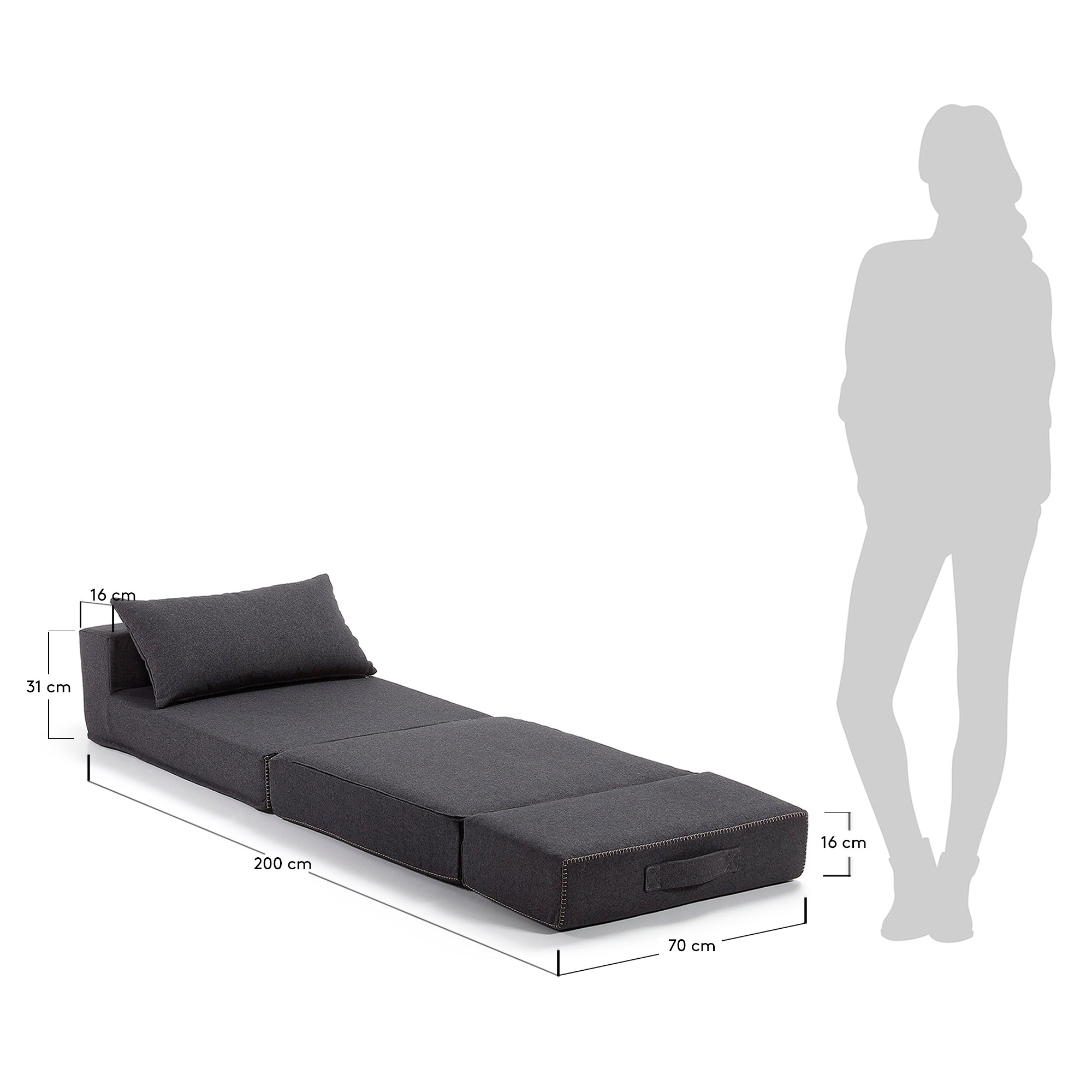 Pouf rembourré en tissu Varese avec traitement Téflon anti-taches. Amovible. Matelas pliable en polyuréthane expansé. Taille du lit 70x185.