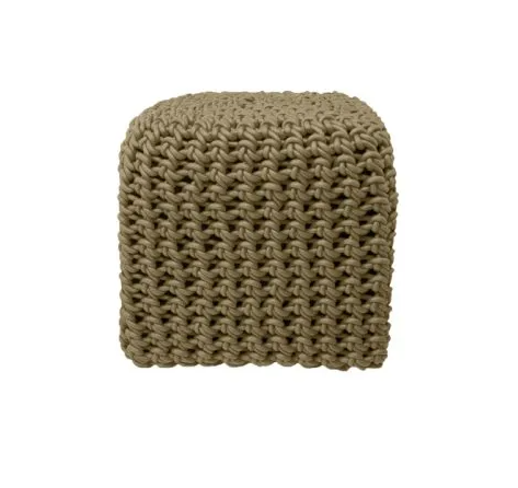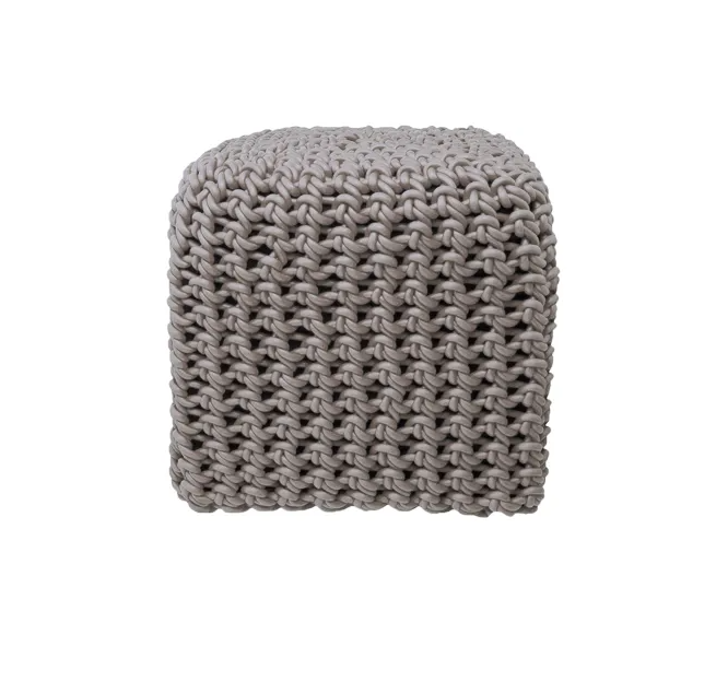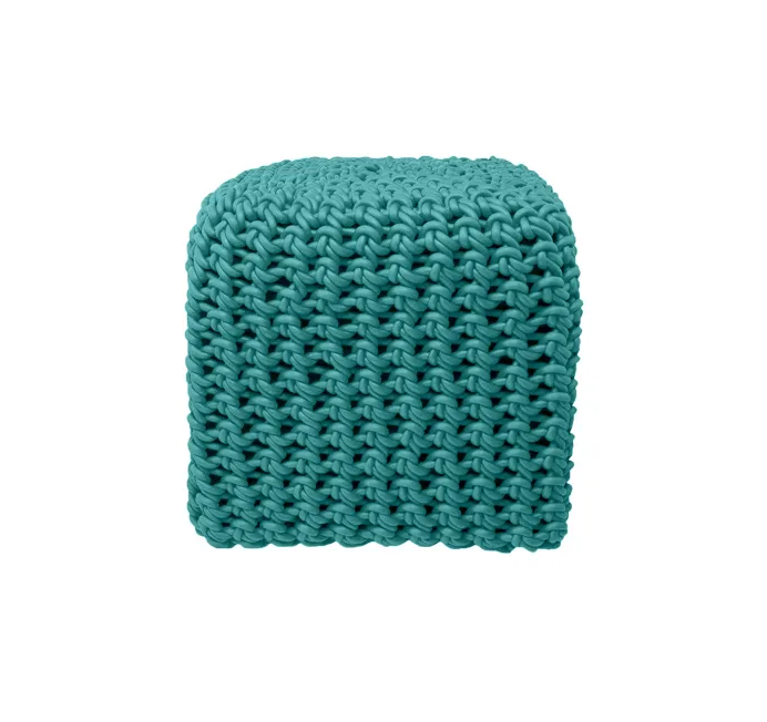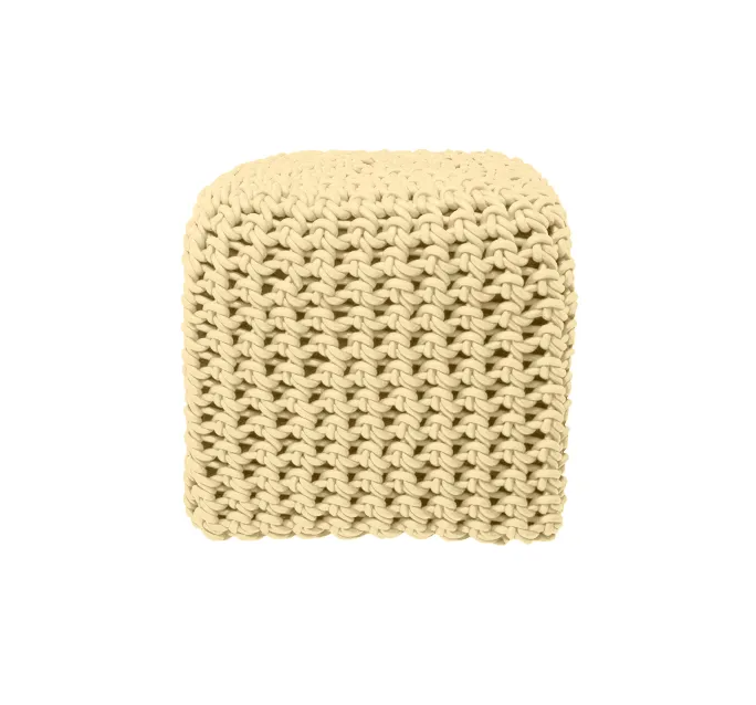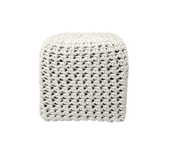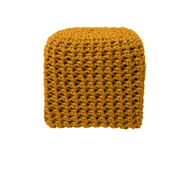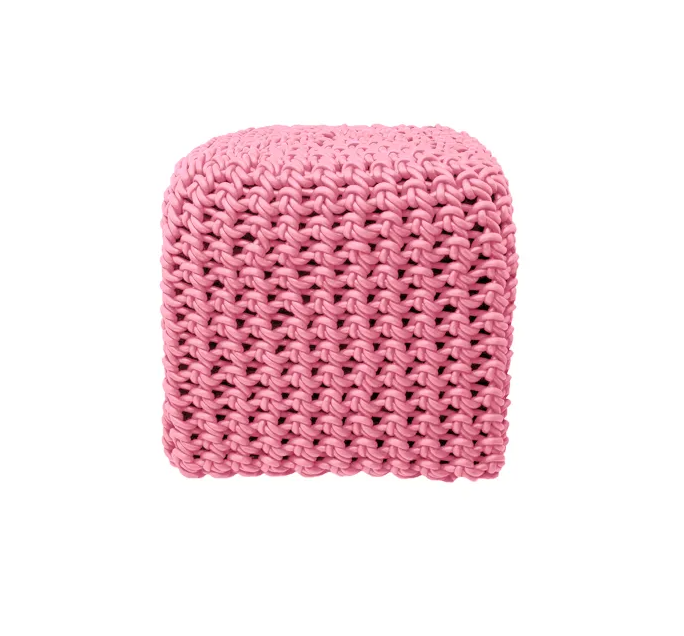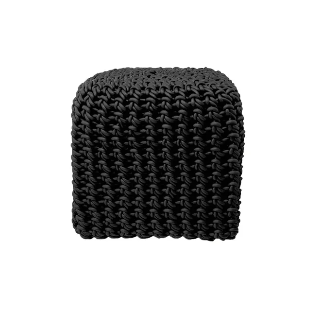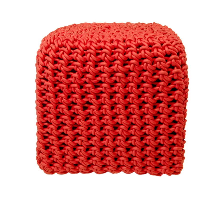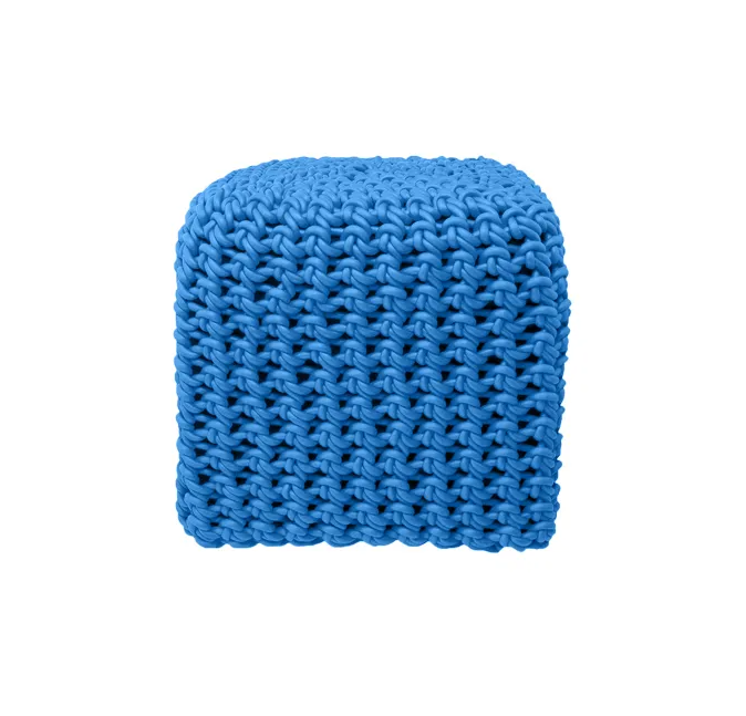 Ces poufs sont tricotés avec du fil de caoutchouc tissé.
