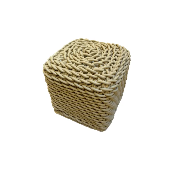 Les poufs en fil de caoutchouc tricoté allient design raffiné, confort et durabilité dans un produit artisanal unique.