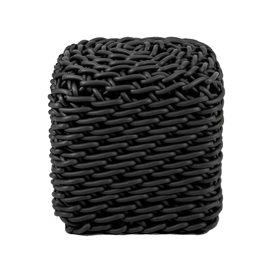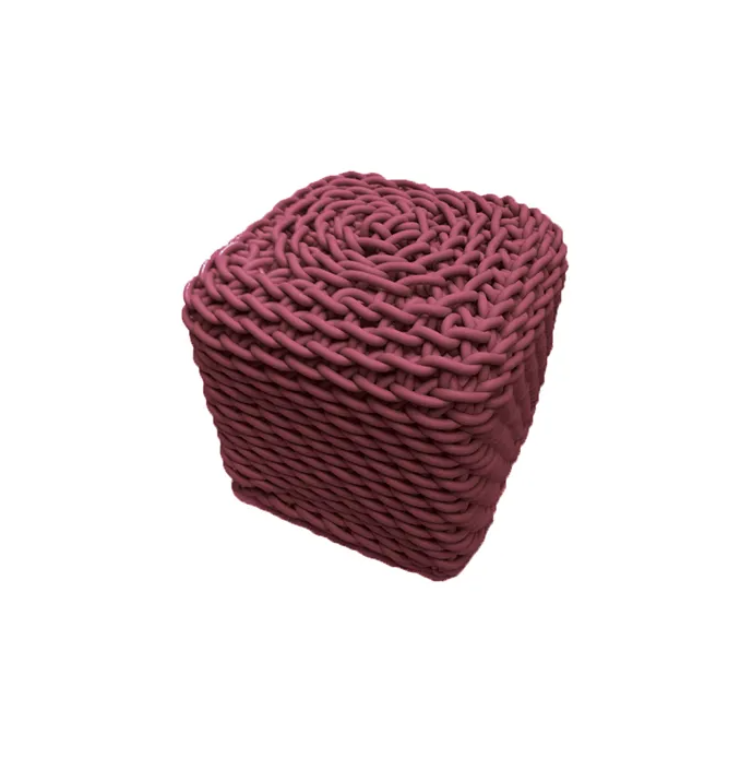 Ces poufs sont tricotés avec du fil de caoutchouc tissé.