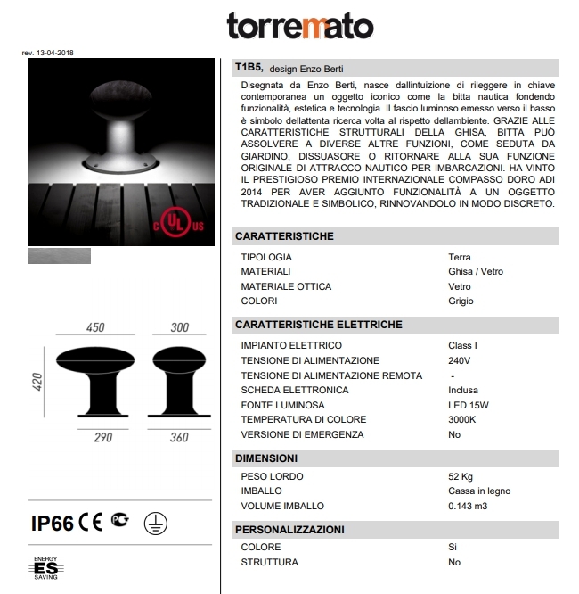 Une lampe d'extérieur qui réinterprète un objet traditionnel et iconique dans une touche contemporaine et innovante: la borne nautique.