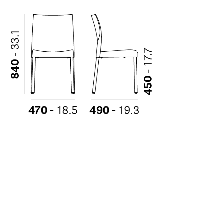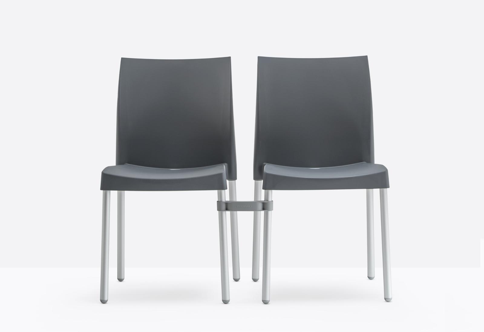 Chaise empilable avec coque en polypropylène et pieds en tube d'aluminium anodisé de 28 mm de diamètre.