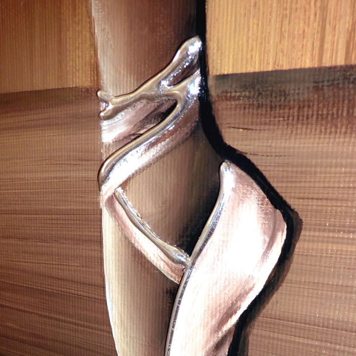 Décoré à la main avec des détails en résine en relief et feuille d'argent sur une structure en toile.