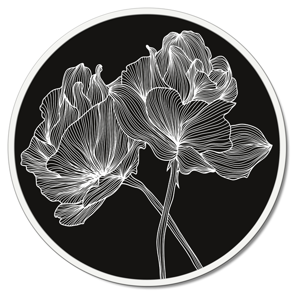 Panneau rond en fibre de bois recouvert de toile en pur coton imprimé en haute définition et avec structure en métal laqué mat.