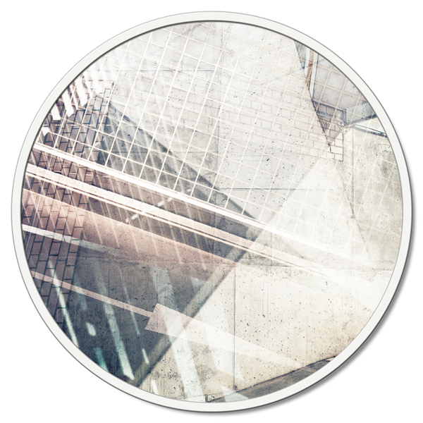 Panneau rond en fibre de bois recouvert de toile en pur coton imprimé en haute définition et avec structure en métal laqué mat.