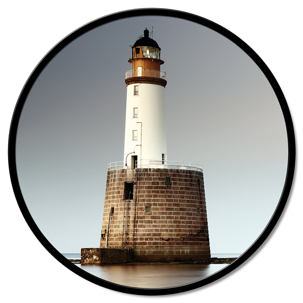 Panneau rond en fibre de bois recouvert de toile en pur coton imprimé en haute définition et avec structure en métal laqué mat.