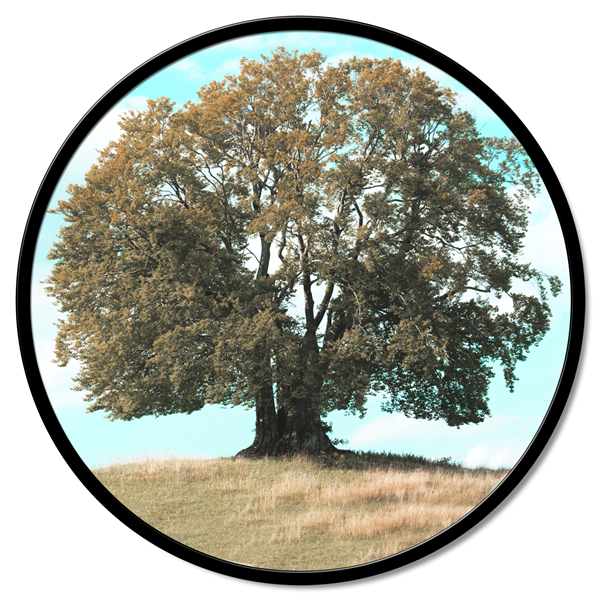 Panneau rond en fibre de bois recouvert de toile en pur coton imprimé en haute définition et avec structure en métal laqué mat.