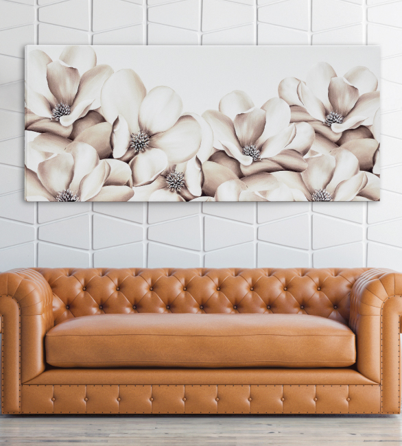 Toile sur toile, décorée à la main avec des détails de feuille d'argent sur résine en relief.
