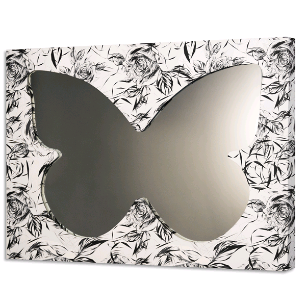 Miroir avec structure en bois, façonné et recouvert de toile imprimée haute définition.
