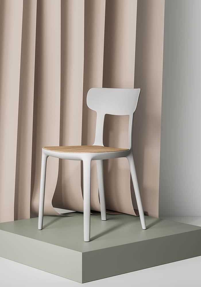 Chaise monobloc en polypropylène recyclé. Les couleurs douces et les formes arrondies ennoblissent la matière de sa structure. Grâce à ses formes linéaires et épurées et à son design léger, Canova convient parfaitement aux projets résidentiels et contractuels.