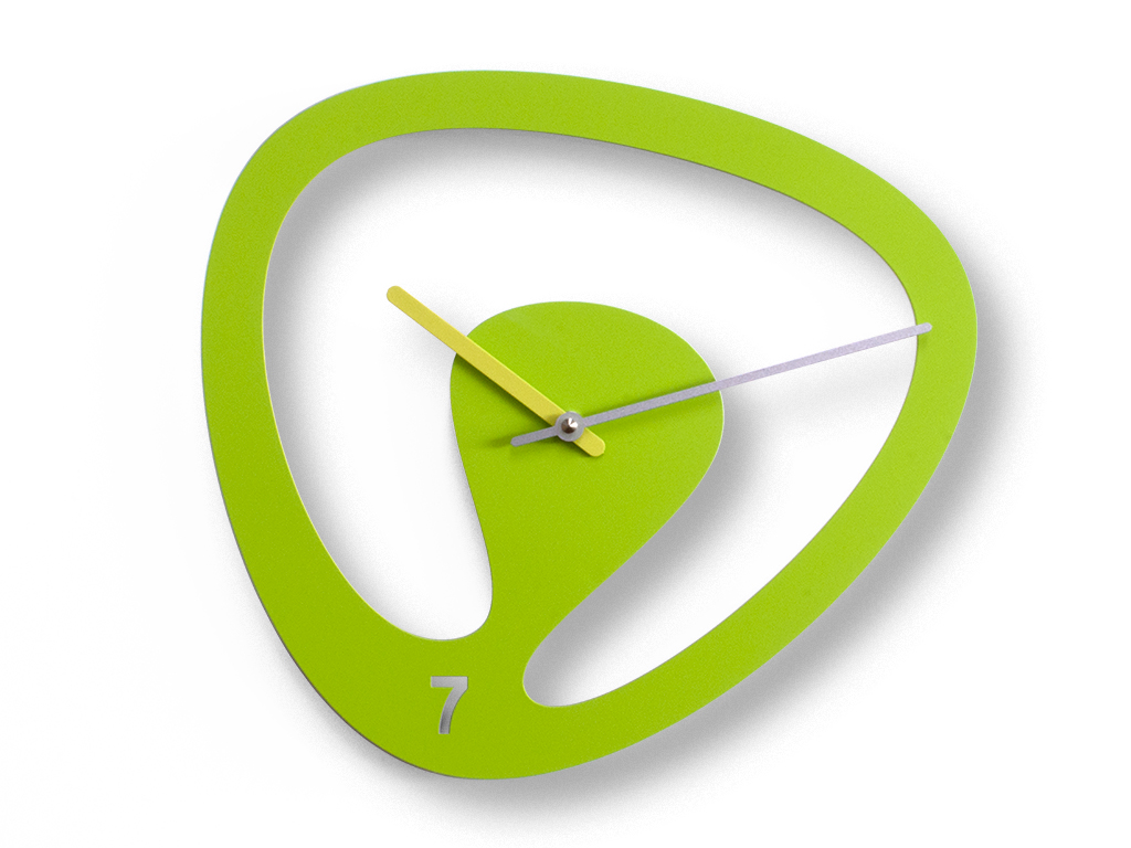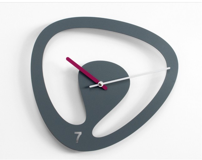 Horloge murale en métal peint. Mouvement à quartz à pile.