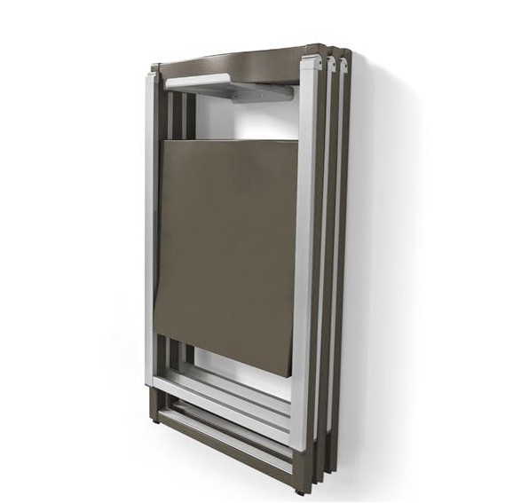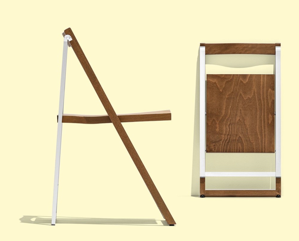 Skip est la chaise pliante qui se distingue par son design linéaire, résultat de l'union entre une partie avant en bois massif et une partie arrière en aluminium.