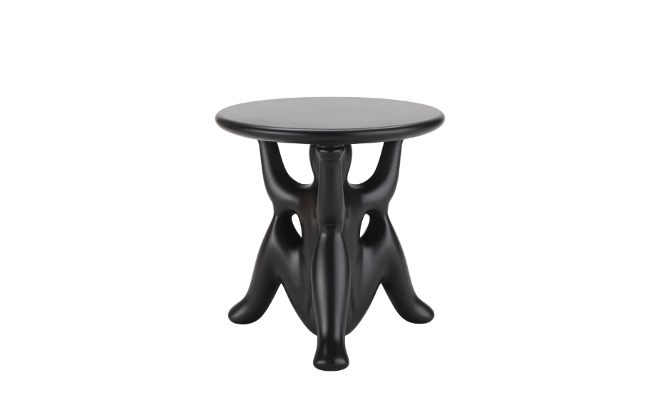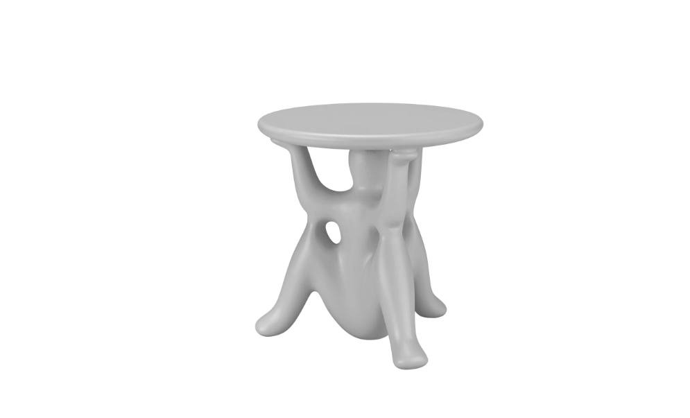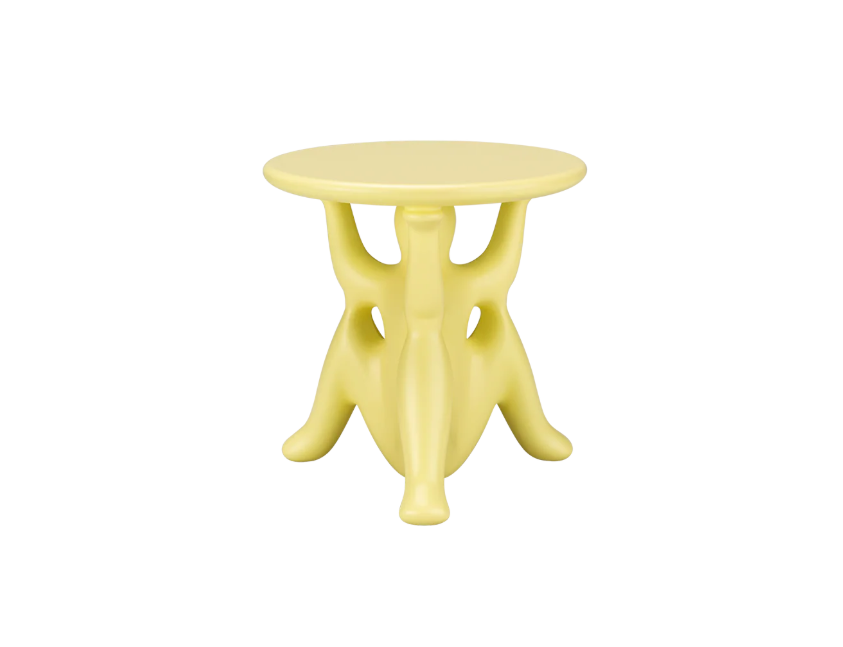HelpYourSelf est la collection de tables dessinée par Philippe Starck pour Qeeboo, où des génies fantastiques soutiennent un plateau rond avec ironie et style.